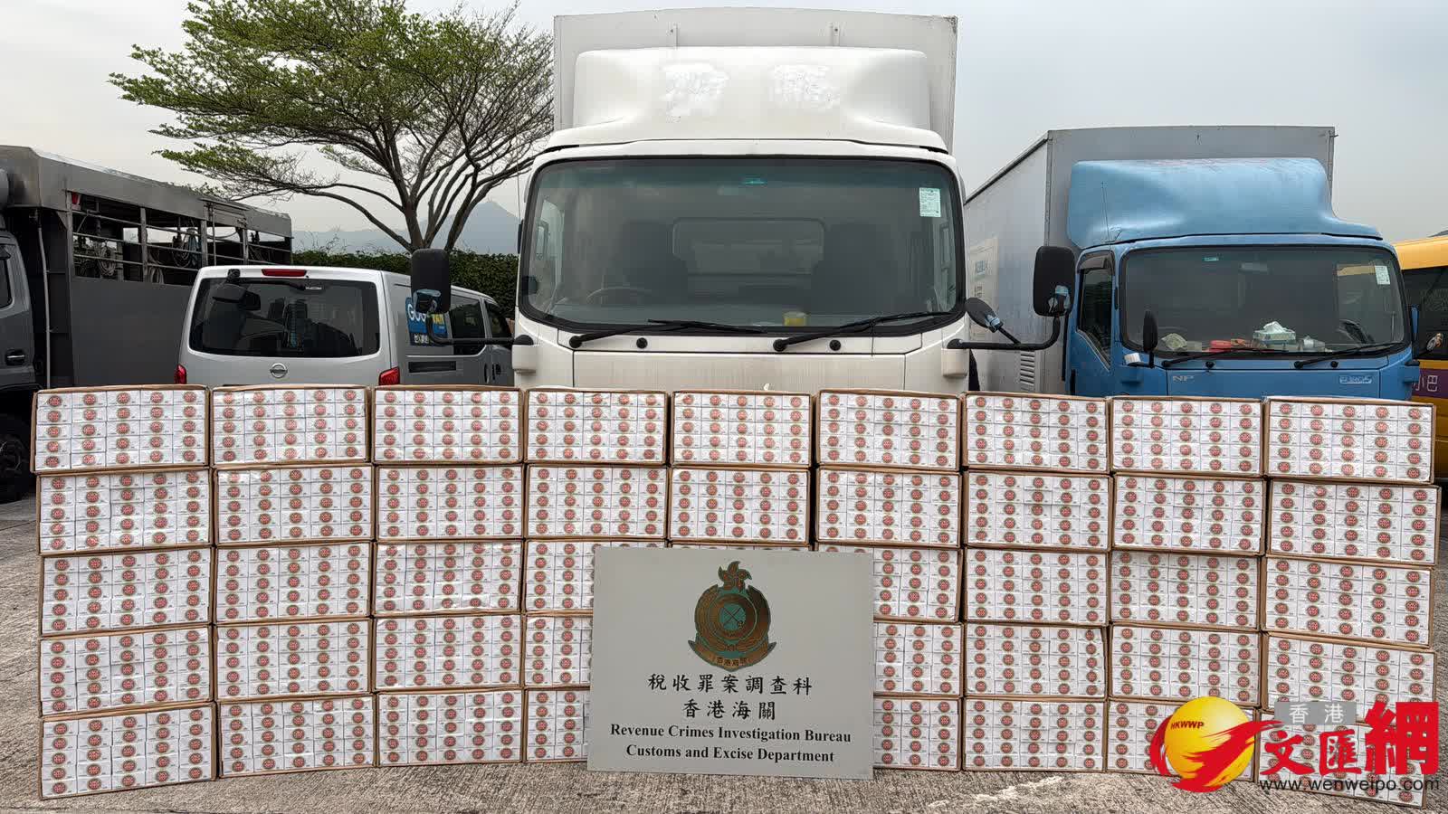 今日下午,海關稅收罪案調查科人員先在鰂魚涌一個露天停車場截查一名39歲報稱外賣員的非華裔男子,當時他正打開身旁一輛貨車的尾板,人員在該貨車內檢獲約90萬支懷懷疑未完稅香煙,其後再搜查該男子停泊場內的另一輛貨車,再檢獲約190萬支懷疑未完稅香煙。人員隨後拘捕該名男子及扣留兩輛涉案貨車。