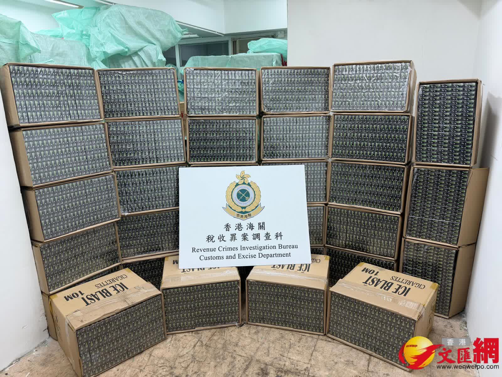 香港文匯報訊(記者 蕭景源)香港海關根據情況分析及調查,今日(4月1日)先在鰂魚涌截查一名可疑男子及兩輛貨車,檢獲一批私煙後,再掩至屯門搗破3個位於同一工業大廈的私煙儲存倉,合共檢獲約1260萬支私煙,市值約5670萬元,應課稅值約4165萬元。海關指私煙集團一口氣租用同一工廈3個單位作為私煙儲存倉,相信是為加速運送私煙的效率和速度,在復活節長假期前盡快補充私煙存貨,而該些私煙都是本地常見品牌,相信供應本地私煙市場。
