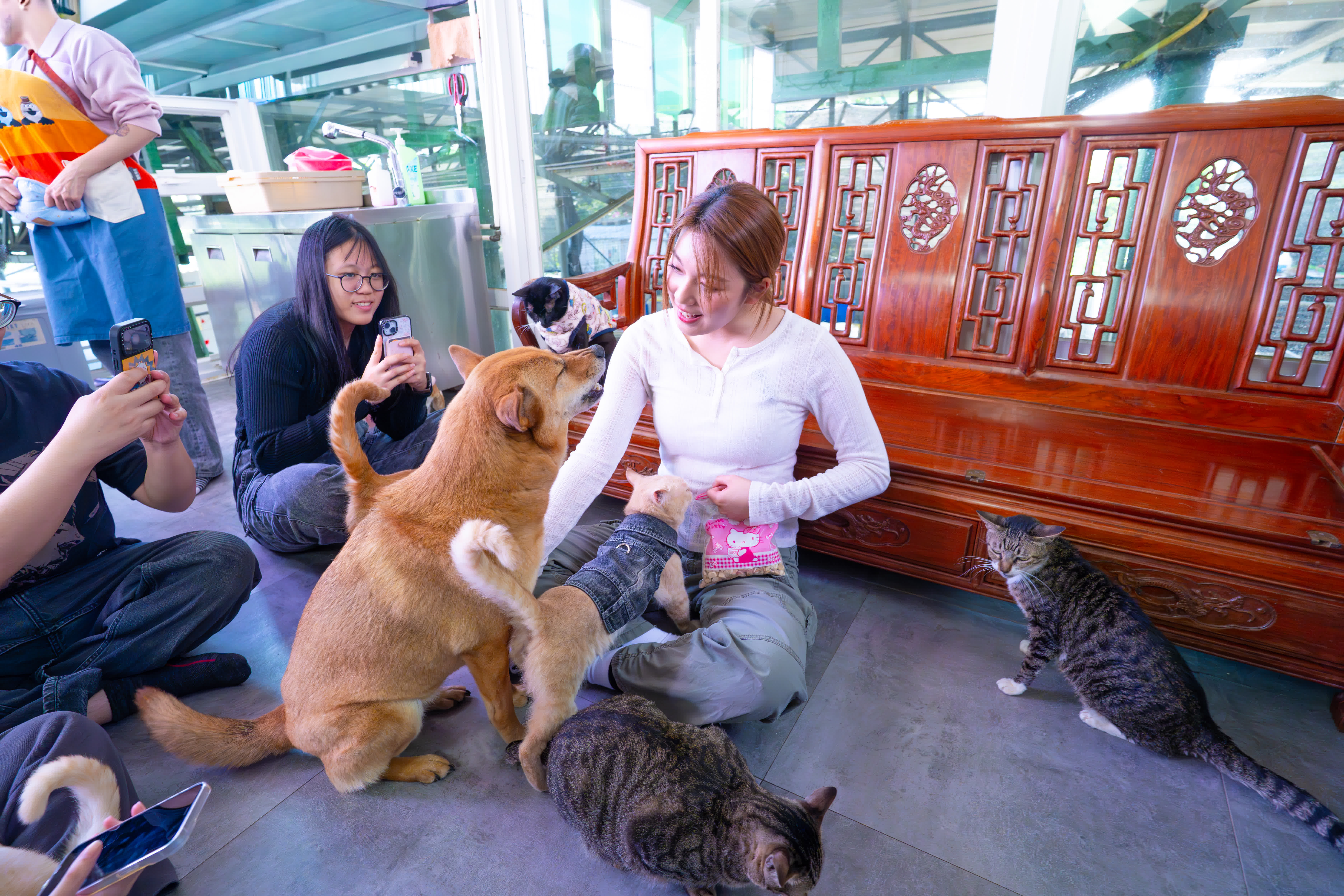 之後Feanna與Fans帶着零食去「貓舍」,當她坐在梳化上,貓貓立即湧上前討抱,其中一隻成功伏在她大腿上的貓咪,更出手打其他貓要獨霸Feanna,她立即控制場面,左擁右抱,笑言有少少「出軌」的感覺:「唔知返到屋企兩隻貓聞到我身上有其牠貓狗味道,會唔會好嬲?」之後她在衣服上發現一條貓鬚,說:「聽講對着執到嘅貓鬚許願好靈驗,我希望所有貓狗都可以幸福健康!」