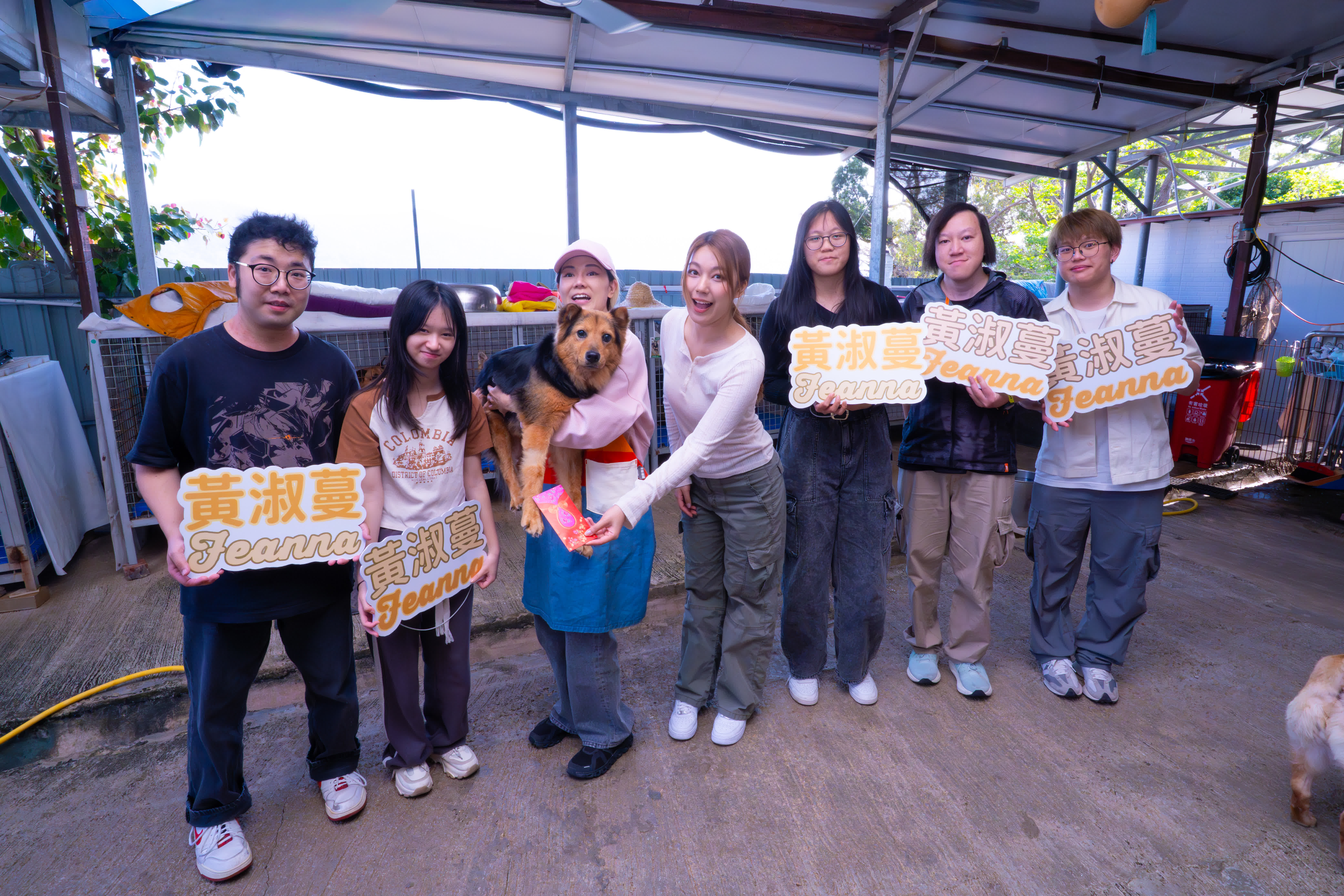 Feanna覺得與Fans一齊到「大樹下」做動物義工很有意義 ,他們一起替狗狗梳毛和餵食,期間被熱情的狗狗「抱抱」索吻,笑言:「無諗過我嘅熒幕初吻係畀咗狗仔,佢嘅熱情同埋衝擊,殺我一個措手不及,佢真係好可愛。」