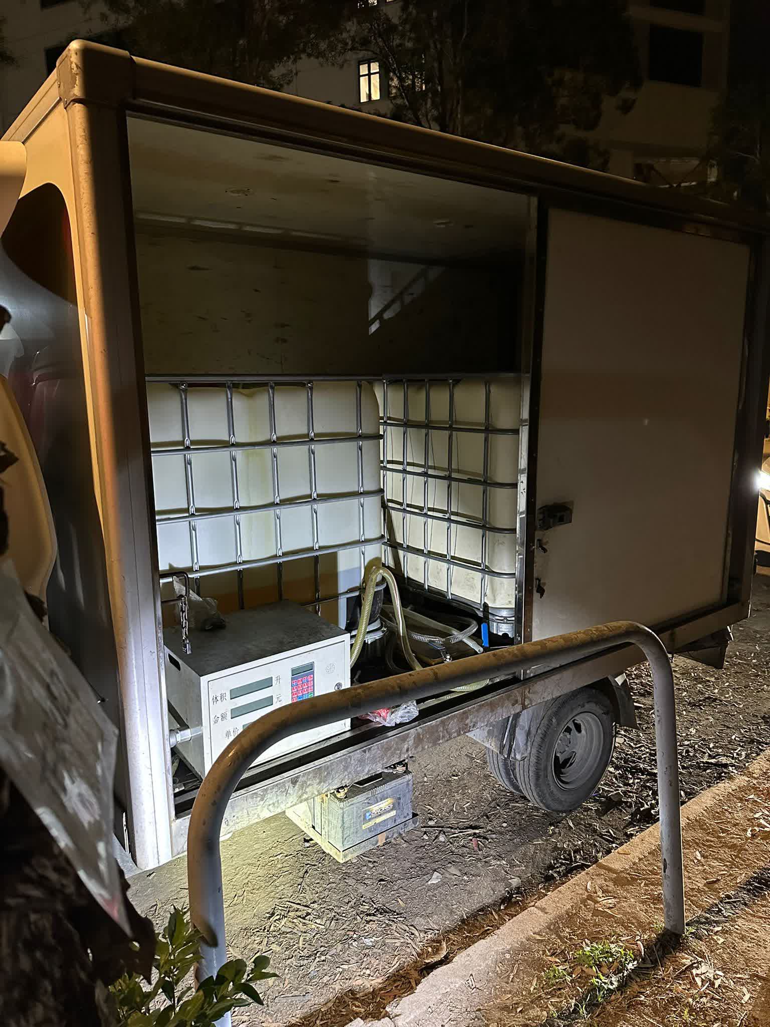 香港文匯報訊(記者 蕭景源)鑒於非法流動加油活動有上升趨勢,將軍澳警區反三合會行動組及東九龍總區小型無人機小隊,昨日(4月1日)晚上聯同消防處打擊非法燃油轉注特遣隊人員,在將軍澳進行針對性打擊非法加油活動的行動,並於將軍澳工業區駿日街搗破一個懷疑非法加油站,截獲一輛車廂放有至少兩個大型油缸的密斗貨車,合共檢獲約257公升汽油,市值約8200元。