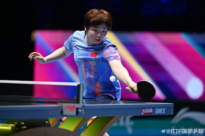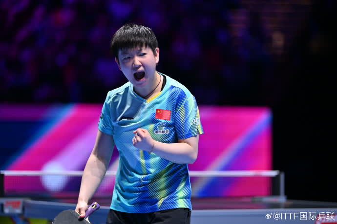 2026澳門乒乓球單打世界盃女單1/8決賽,孫穎莎4-2戰勝隊友蒯曼,晉級8強。六局比分為:9-11,11-4,10-12,12-10,11-6,13-11。