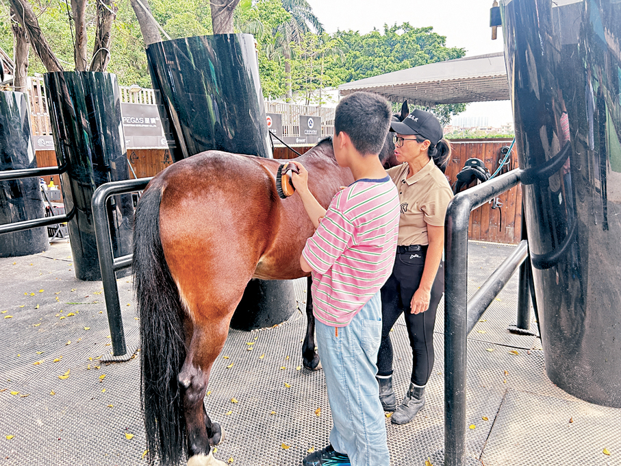 香港文匯報訊(記者 敖敏輝 廣州報道)在歐美已有50餘年歷史的「馬術療癒」(Hippotherapy),正成為中國馬產業與特教康復融合的新賽道。這一療法利用馬的規律性運動及人馬互動,針對以自閉症為主的特殊患者群體的軀體、心理及行為障礙進行干預,達到輔助康復的效果。作為廣東極少數以面向自閉症群體為主的馬術療癒團隊,廣州星驥馬術與辰暉教育創新推出「ABA(應用行為分析)+馬術」模式,為大齡自閉症青少年提供了從室內干預到戶外實戰的閉環解決方案,成為大灣區馬術療癒領域的新探索。