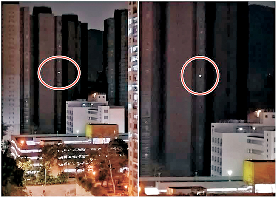 據了解,警方共接獲兩宗相關報案,並立即展開調查和搜索。在分析拍攝角度後,相信網上照片所顯示的位置是宏盛閣,可疑燈光的位置約為20樓至25樓之間。警員隨即檢查宏福苑各座大樓地面出入口,確定鐵閘已經鎖好。另一方面,從地面往上看,宏福苑內各大樓並沒有燈光,再查看當日傍晚工人進出紀錄,確定所有工人當時已經離開。