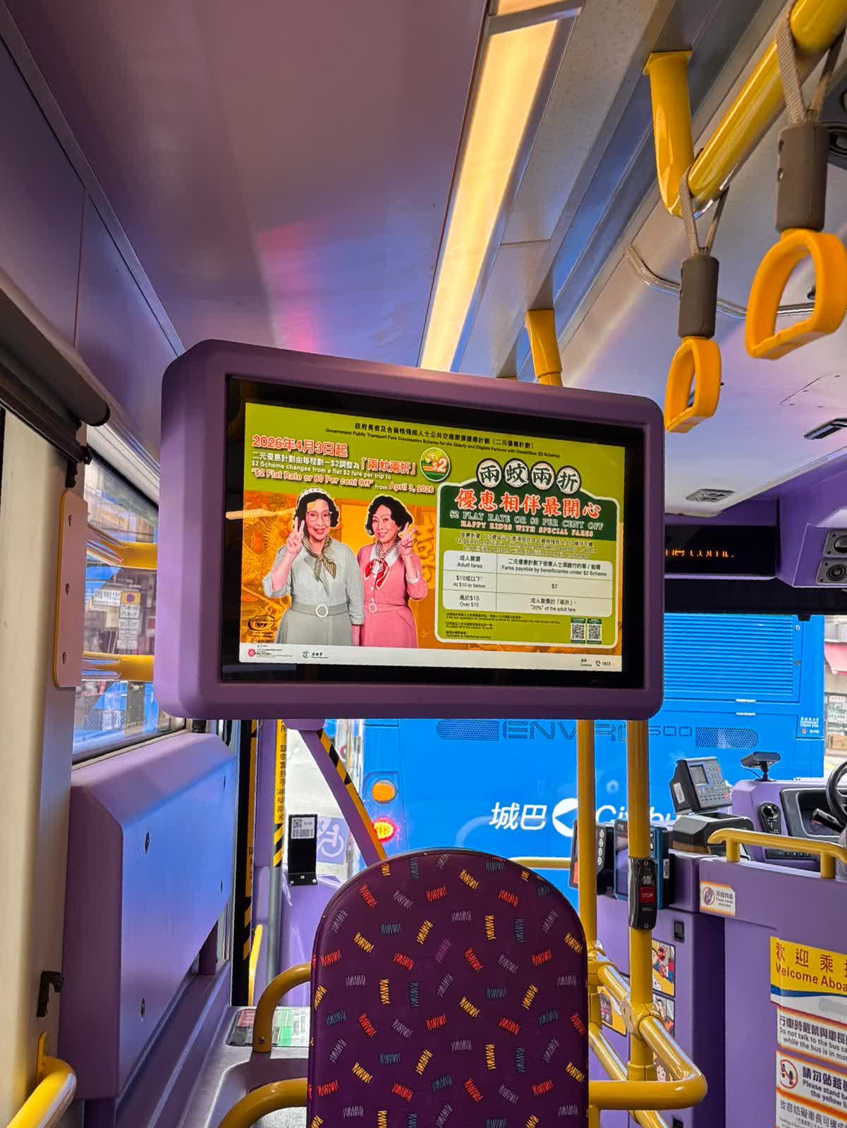 城巴表示,為配合政府「兩蚊兩折」政策實施,已作出全面準備,包括更新收費系統及完成技術測試、培訓前線同事、加強線上線下宣傳等。實施當日,城巴會安排宣傳大使駐守主要巴士總站,協助長者及解答查詢,並加強後勤支援監察實施情況。
