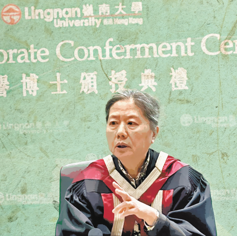 1月下旬,身着博士袍的王安憶出現在香港嶺南大學陳德泰大會堂的現場。20年前她曾應邀出任駐校作家,給中文系開設文學寫作課程。已過70歲的她身材仍然挺拔,眼角皺紋不多,白髮厚密。不過,與同場亮相的甄子丹等其他名流相比,王安憶的面部表情並不自然,有些微的緊張和侷促感,或也可描述為嚴正凜然,和旁人幾乎沒有交流,顯然眼前的人、事已是她完全不熟悉的。