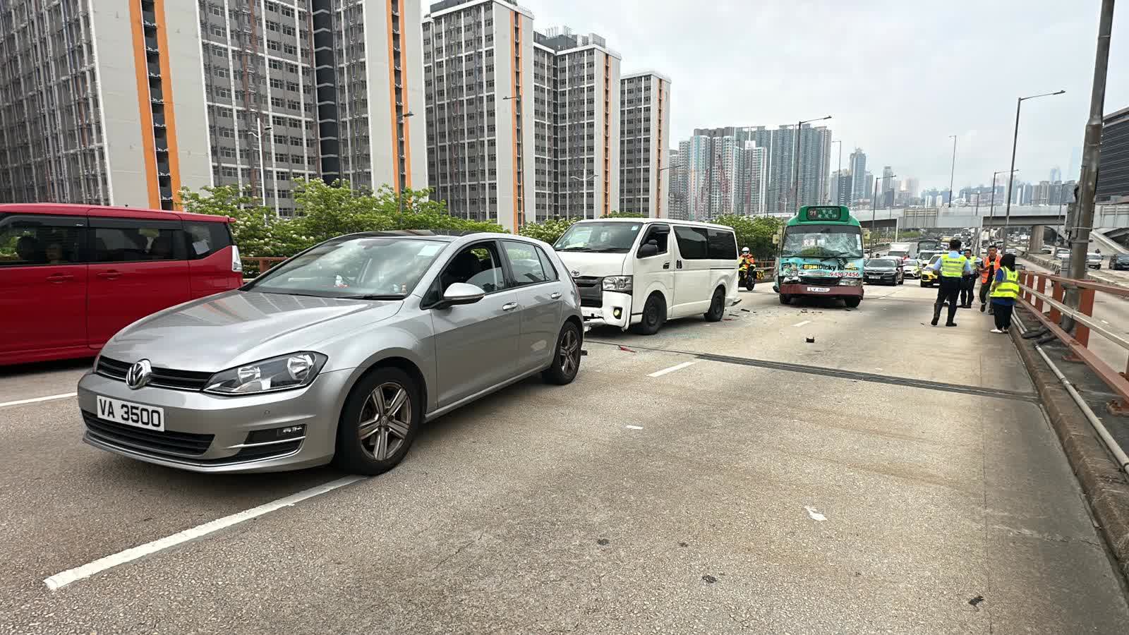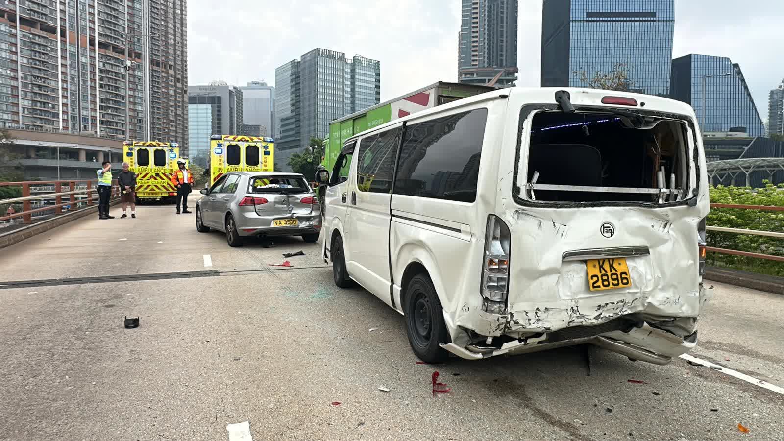 香港文匯報訊(記者 蕭景源)今日(3日)早上10時許,新蒲崗太子道東近李求恩紀念中學對開發生3車連環相撞交通意外,分涉一輛私家車、小巴及客貨車,初步6人受傷,包括一名6歲男童,救援人員趕至為傷者進行包紮及送院治理;警方正調查車禍原因。受車禍封路影響,現場交通一度擠塞。