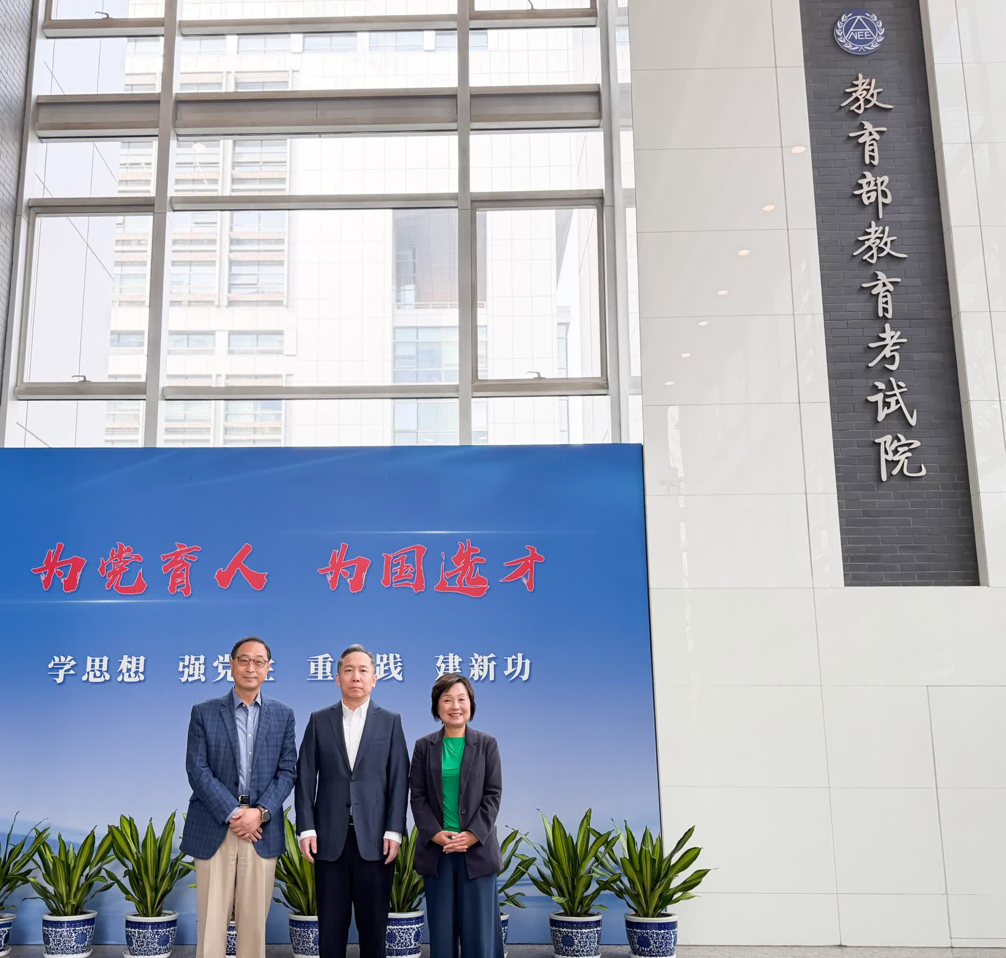 蔡若蓮透露,她在北京期間到訪了多個單位。先與教育部港澳台辦公室主任、國際合作與交流司司長楊丹等會面,就促進兩地教育交流和合作,及多項教育議題交換意見。隨後,又到訪國家教育部教育考試院,與院長李強等領導會面,就教育評核的最新發展趨勢進行深入探討,雙方分享了在人才培養方面的寶貴經驗。蔡若蓮到訪國家教育部教育考試院,與院長李強等領導會面,