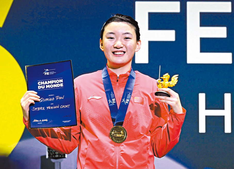 香港文匯報訊 據中新網報道,昨日(3日)在巴西里約熱內盧進行的2026年世界青少年劍擊錦標賽,中國16歲小將潘其妙在女子佩劍少年組比賽中摘得金牌,成功包攬本屆賽事青年組與少年組女子佩劍個人項目雙金,成就「雙冠王」。