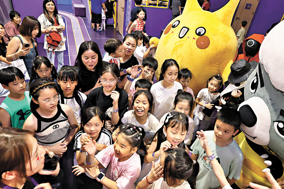 「場館裏的工作人員很多都會講廣東話,小朋友玩得特別開心,像麥咭闖關的題目還專門設置了香港版本,非常貼心。」從香港大埔來的劉太帶着兩個孩子,在蹦床區玩得不亦樂乎。