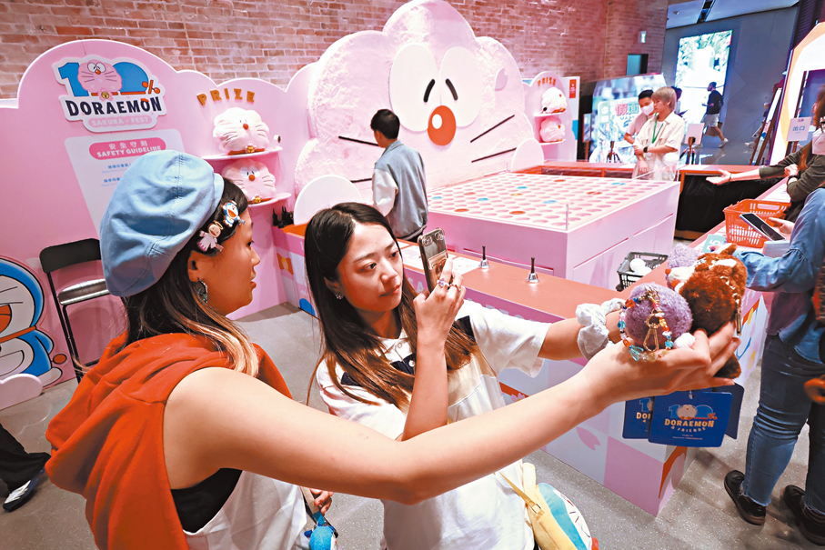 香港文匯報訊(記者 吳健怡)復活節假期有不少活動吸引人流,其中由香港創意品牌 AllRightsReserved(ARR)主辦及策劃的《100%多啦A夢& FRIENDS》巡迴特展在國際舞台上大受好評,由於當時起點為香港,主辦方特意在昨日起至本月19日,在銅鑼灣希慎廣場舉辦全新活動「100%多啦A夢櫻花節」,讓一眾粉絲在復活節小長假中,與換上櫻花造型的多啦A夢及其好友一同沉浸於粉色春日氛圍。有到場粉絲表示,今次展覽的限定商品設計精美,加上多啦A夢陪伴成長的深厚感情,讓他們毫不猶豫地掃貨,為童年回憶買單。