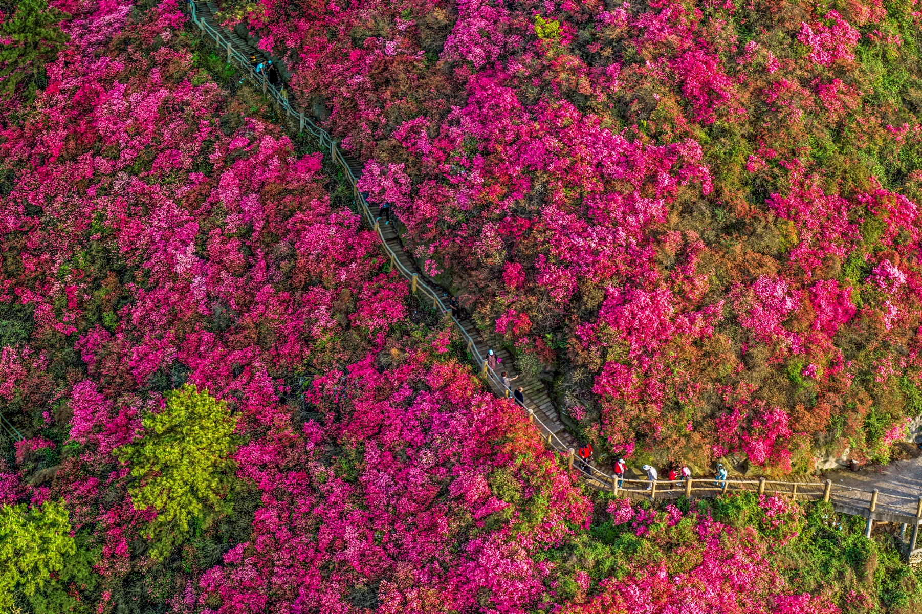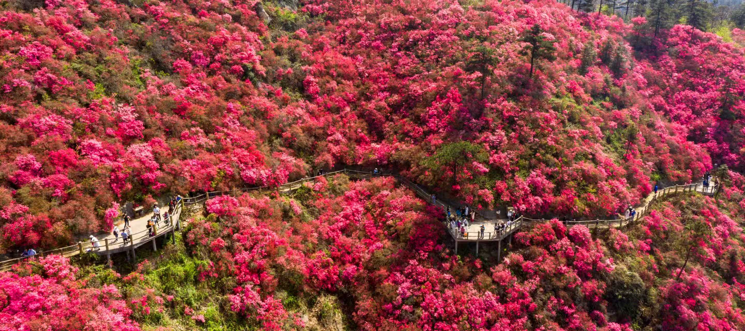 每年春季,杜鵑花次第開放,花期長達50天。花宇山、花海、花洋等核心景點漫山紅遍,景象蔚為壯觀。景區還推出「空中賞花」索道、花海音樂會等項目,每年吸引數萬遊客前往踏春賞花。