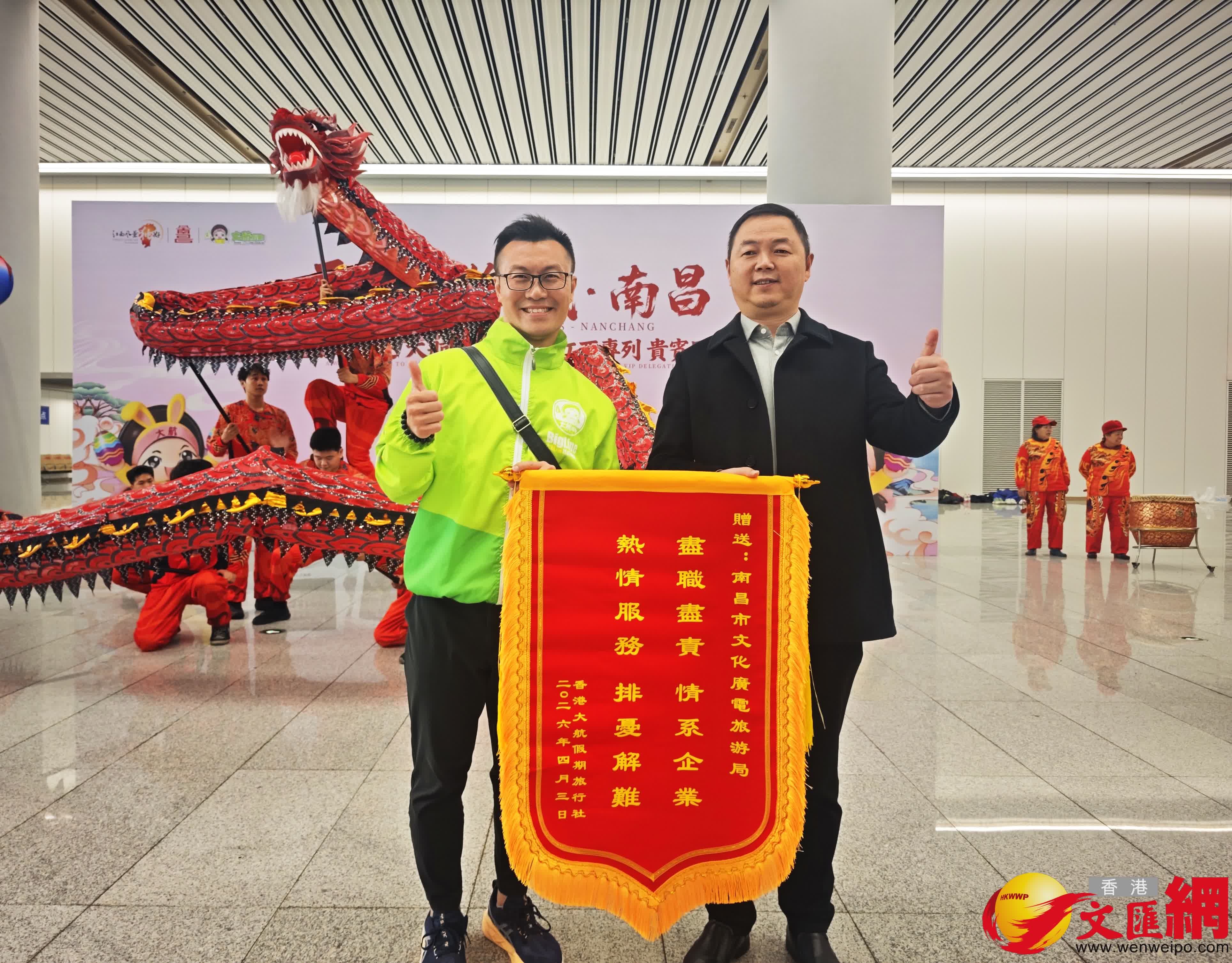 (香港文匯網記者 黃慧 江西報道)4月3日至7日,由南昌市文廣旅遊局主辦的2026年首趟千名香港遊客專列旅遊團暢遊南昌活動舉行。千餘名香港市民搭乘高鐵走進英雄城南昌,踏青賞景,品贛菜遊滕王閣,體驗南昌老城煙火、贛派街巷與都市交融的獨特魅力。