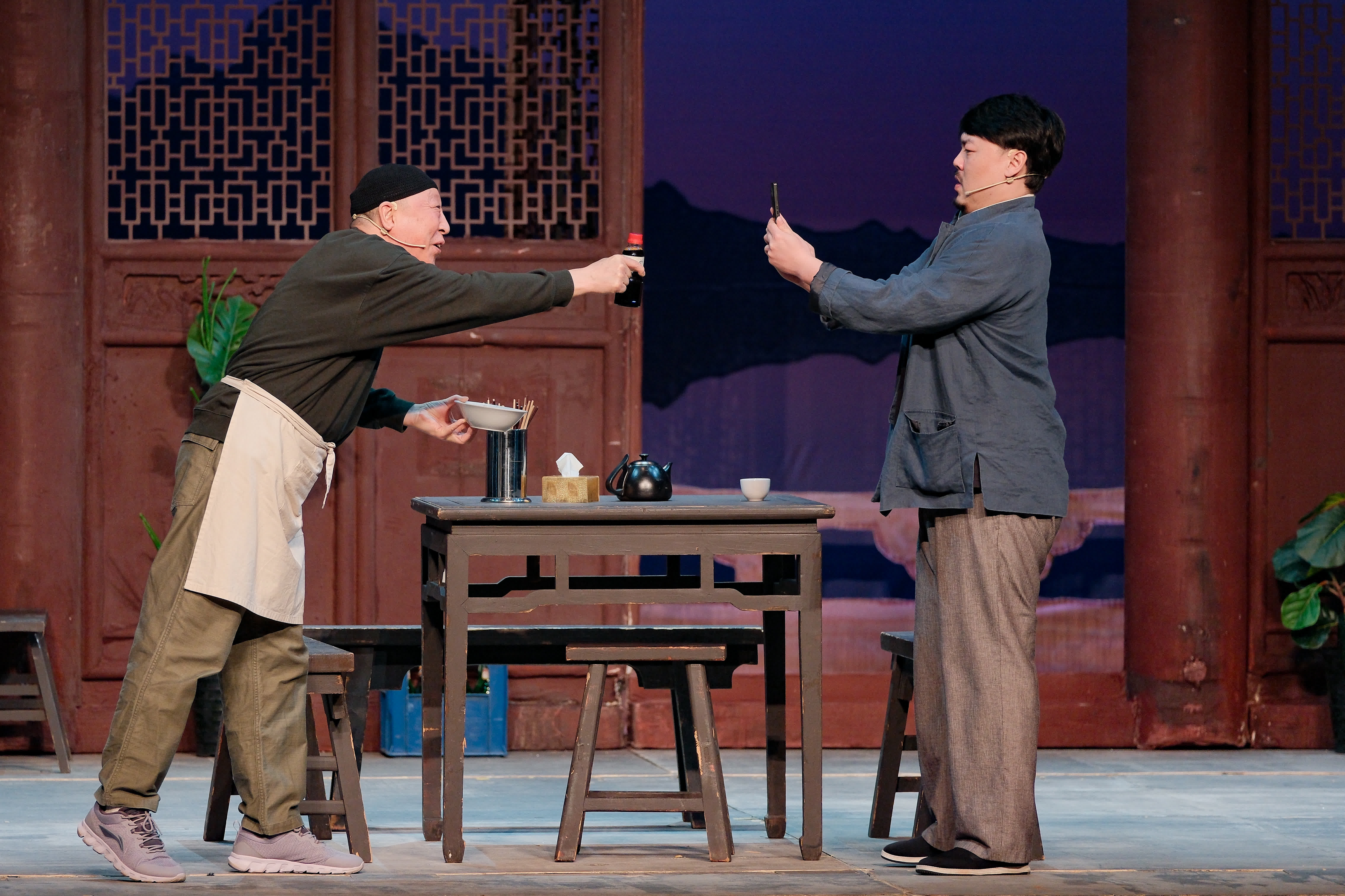 幕啟燈明,承載歲月記憶的「於家二葷鋪」在香江舞台上緩緩呈現。倪大紅飾演的老闆於五守着祖傳小館,生活平淡安穩。房產仲介、古董商、過氣歌手等各懷心思的人物接連出現,幾番試探與周旋,將他捲入一場荒誕騙局。全劇以黑色幽默呈現市井小人物的悲歡離合,在嬉笑怒罵中展現人心百態,既有京腔京韻的人間煙火,也有觸動心底的溫情。