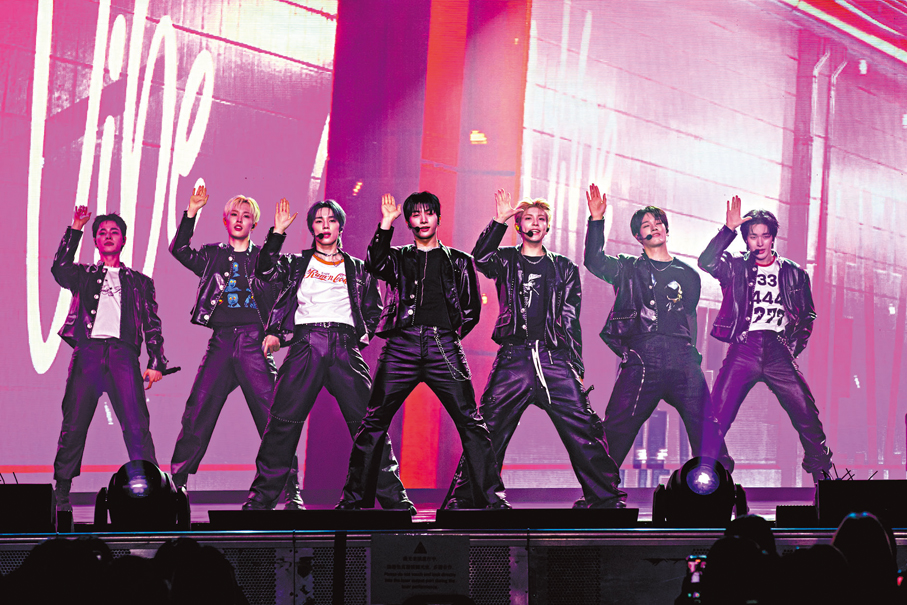 香港文匯報訊(記者 阿祖)新生代韓國男團NEXZ近日首次訪港,於亞洲國際博覽館舉行一連兩場的《NEXZ SPECIAL CONCERT in HONG KONG》。出道僅一年多、平均年齡僅19.1歲的NEXZ首次踏足香港舞台,難掩興奮之情,七位成員以校服造型帥氣登場,甫開場便帶來節奏強烈的《SIMMER》與《HARD》,整齊劃一又高難度的舞蹈動作,配合成員們穩定的唱功,展現力量與性感並存的舞台魅力。隨後NEXZ換上黑色皮褸造型,再度掀起高潮,接連演唱《One Bite》、《NALLINA》,延續強勁氣勢。當晚NEXZ亦帶來《Ride the Vibe》、《O-RLY?》、《Beat-Boxer》等多首人氣主打歌。
