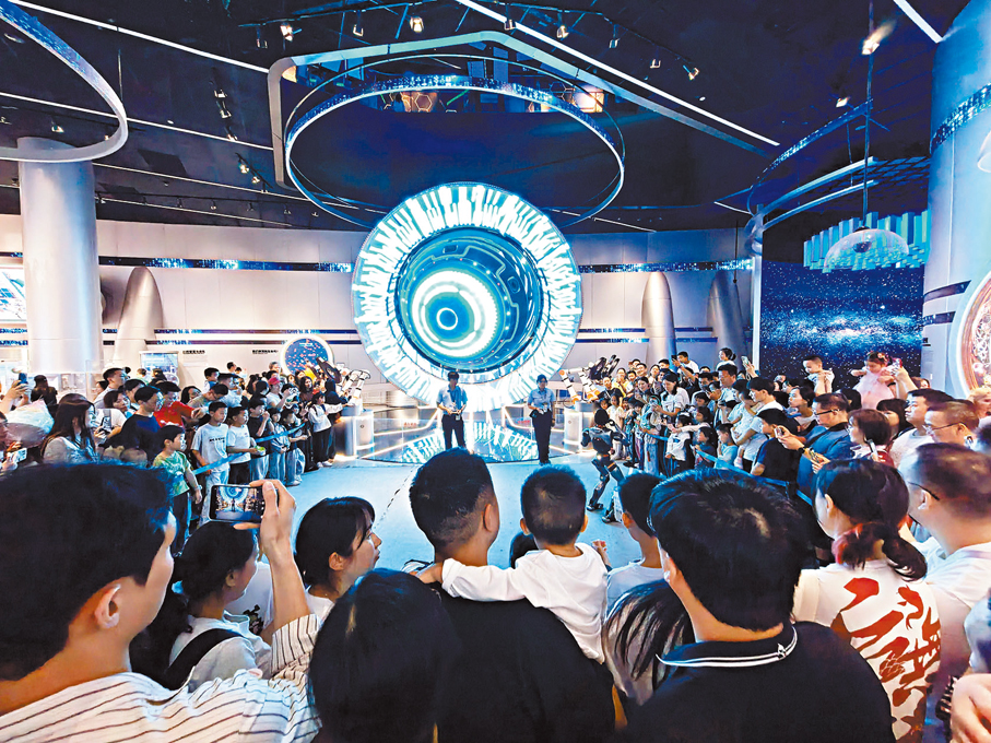 鄭永春介紹,場館的展陳邏輯清晰適配不同人群需求:「三樓聚焦『生活中的科技』,貼近親子家庭的日常認知;四樓聚焦『產業中的科技』,面向對前沿領域感興趣的成年觀眾,覆蓋人工智能、生物醫藥、機器人、量子科技等多個賽道。在這裏,觀眾既能讀懂當下科技與生活的緊密聯結,也能預見未來科技的發展方向。」