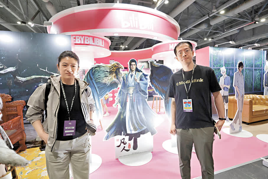 場內有不少潮流品牌攤位。bilibili高級商務總監亢越對香港文匯報表示,《時光代理人》、《凡人修仙傳》等熱門國創IP深受海內外觀眾喜愛,其中《時光代理人》更已登陸香港電視台(RTHK)播出。在此次展會中,不少入場觀眾就紛紛到該動漫IP的展位打卡合影。