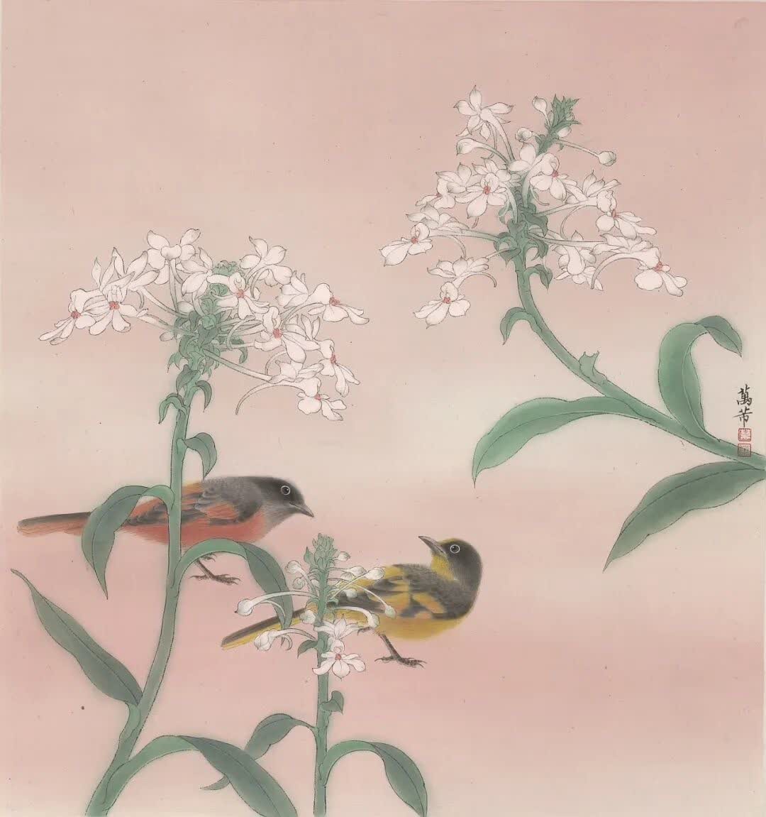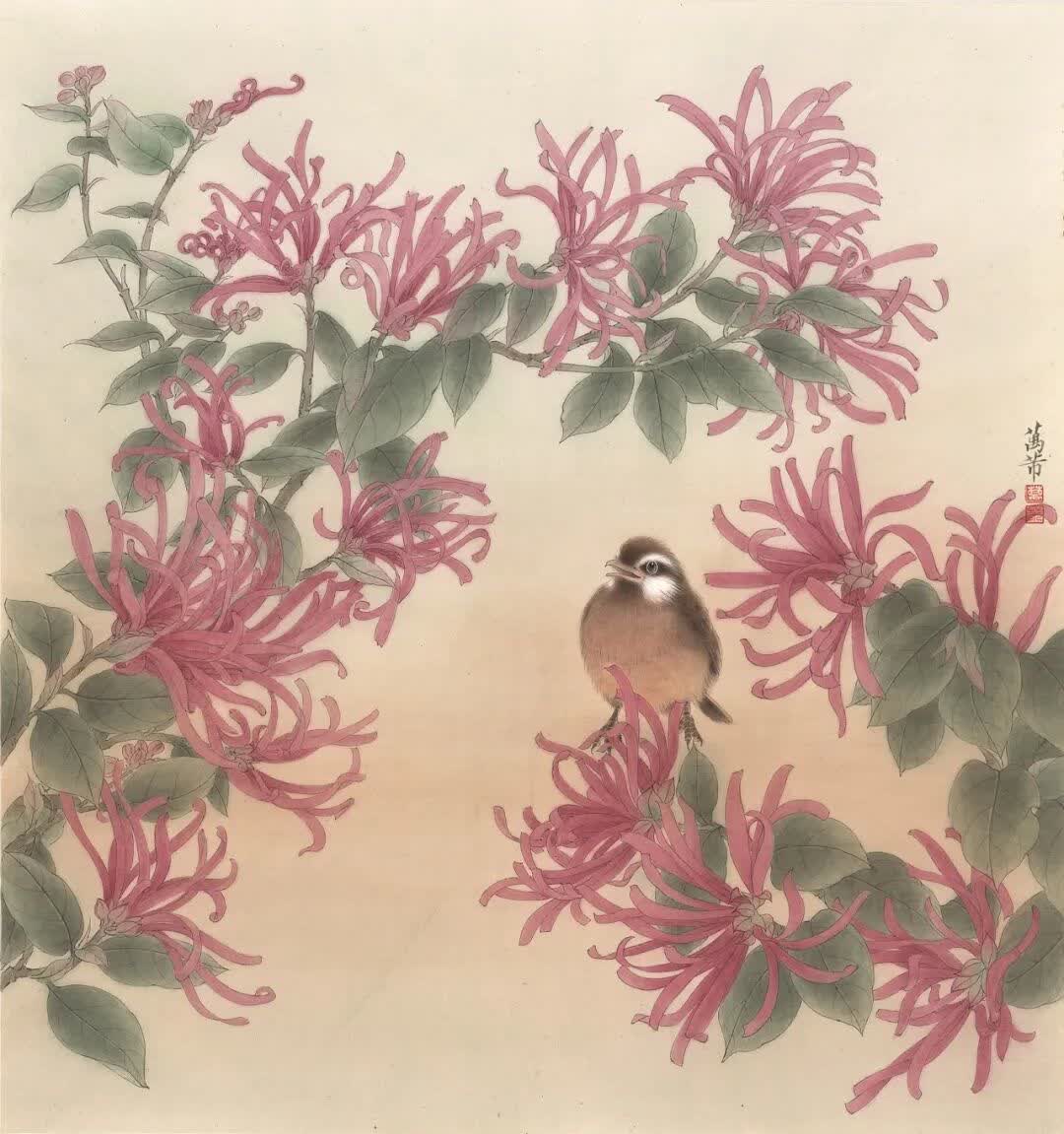 萬芾是上海實力派花鳥畫家,她筆下「花鳥世界」中的二十四節氣,作品色彩豐富,構圖現代而不失傳統韻味。
