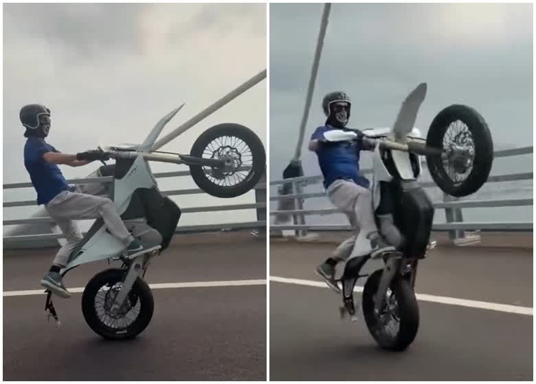 香港文匯報訊(記者 蕭景源)今日(5日)網上流傳短片,發帖者稱一名英國電單車發燒友,在葵青多處公路包括青馬大橋,駕駛一輛沒有掛上車牌的電單車上路,沿途大玩花式駕駛,最後被巡邏的交警目睹截停斷正。