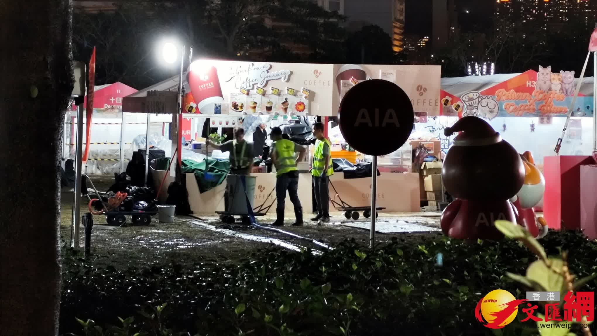 今天上午及下午本港分別有暴雨,至下午2時05分天文台發出黃色暴雨警告,持續至下午5時40分才取消。期間主辦方沒有向入場人士提供膠袋包裹雙腳,但有向100名入場人士提供免費洗鞋服務,其他入場人士亦可享八折。