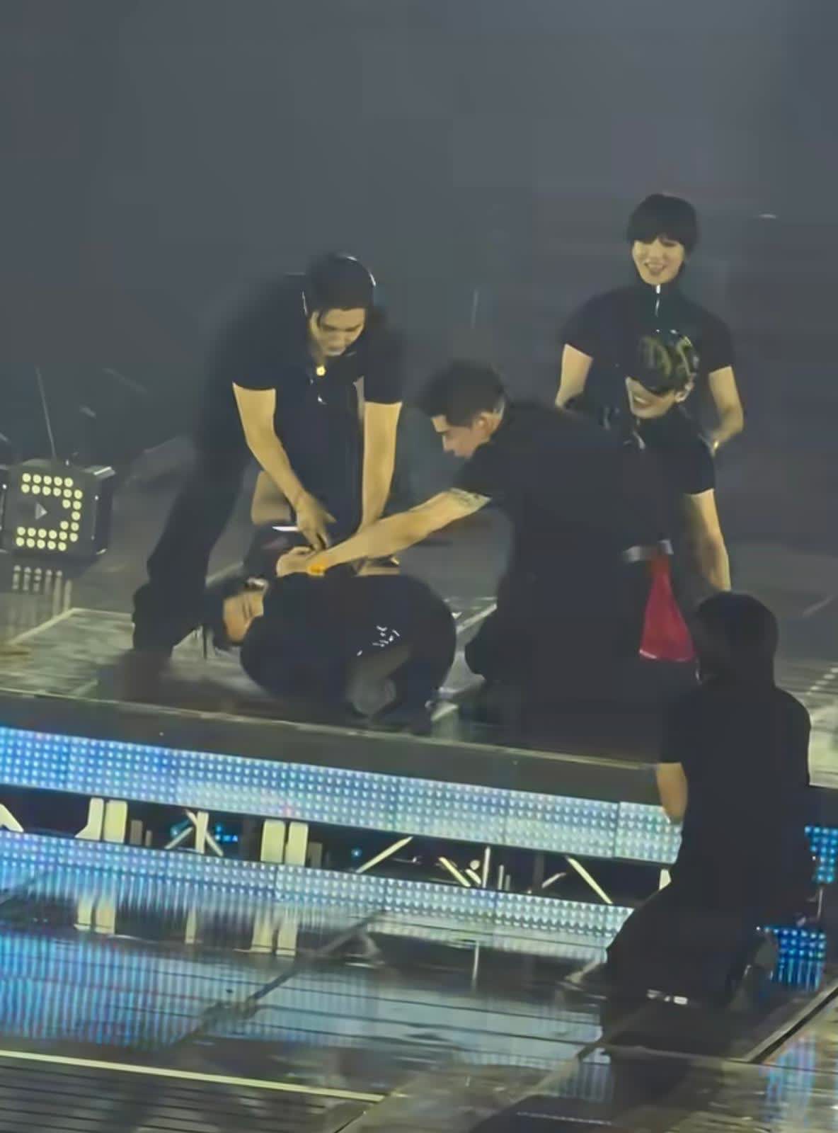 東海一度躺在地上無法馬上起身,似乎在忍受撞擊帶來的疼痛,甚至在原地翻了個身。鏡頭拉近後,卻發現他臉上掛着笑容,顯然也為自己的失誤感到有些不好意思;隊友神童見狀還開玩笑地對他做起CPR(心肺復甦)按壓,緩解現場緊張氣氛。直到歌曲尾聲,東海才緩緩站起來,撥了撥頭髮、笑一笑試圖安撫台下擔心的歌迷,繼而慢慢地步行落台。