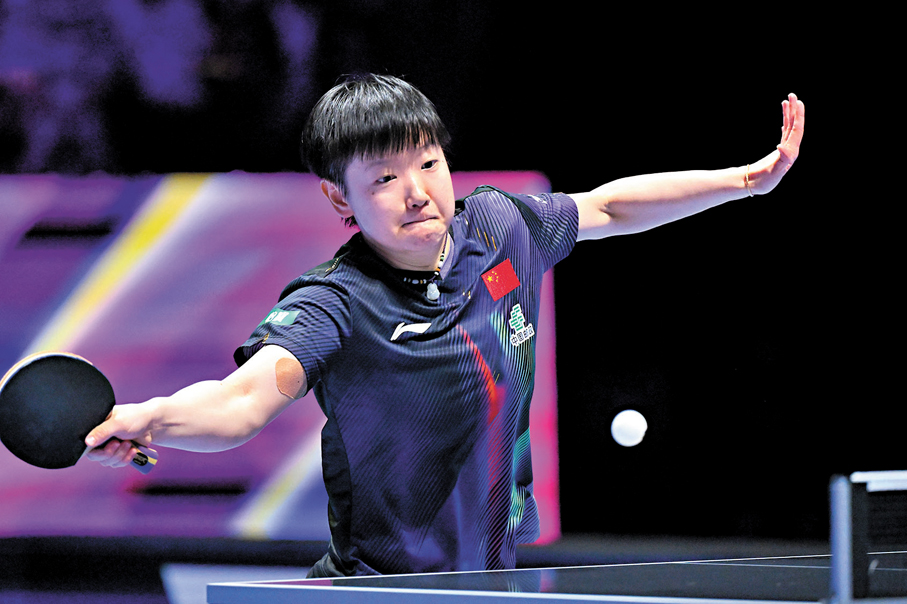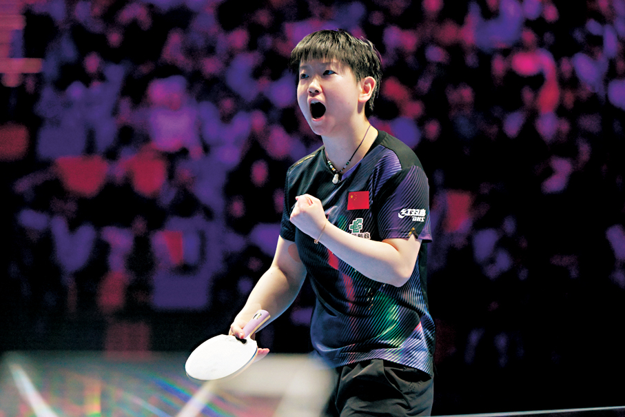 香港文匯報訊(記者 郭正謙)澳門乒乓球世界盃女子單打決賽上演「中國打吡」,孫穎莎面對國家隊隊友王曼昱展現強大實力,贏11:9、11:8、13:11、8:11及11:7,以局數4:1勝出,成為史上首位完成世界盃女單三連霸的球手。