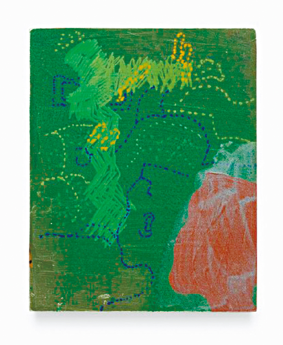 同樣是首次進行展示的木板畫《Day Jah Voo》中,Walter融入了多種色調的綠,或許會讓人聯想到香港葱鬱的環境,以及在2021年由彩通公司創造的定製色「香港電車綠」。深綠色塗料原是太平洋戰爭後的剩餘物資,自1940年代起被回收應用於粉刷電車車身。