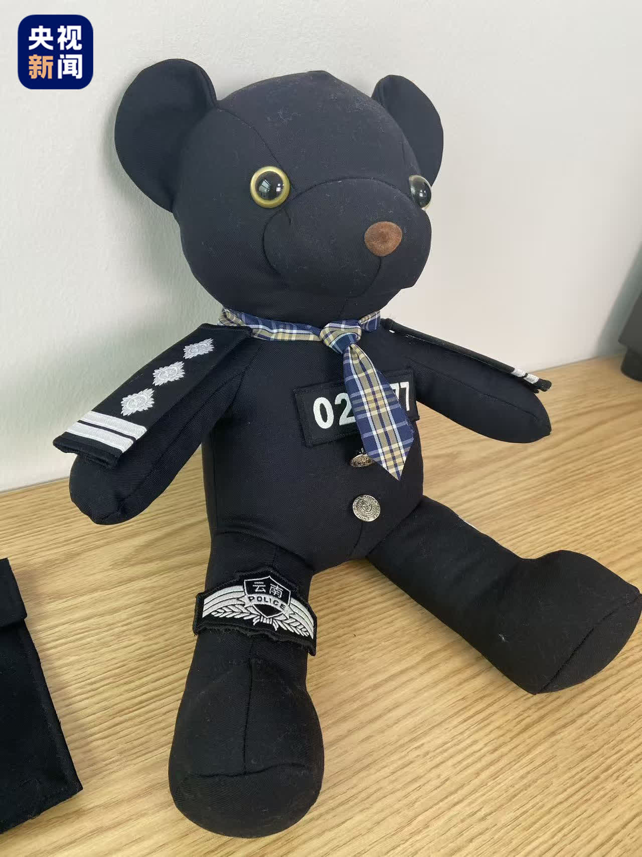 除了這位輔警父親,喻潔還曾為一名因公殉職的禁毒警察的親人,縫製過專屬的思念熊。她將他生前的警號和警徽都縫在了小熊身上,盡最大努力保留了原來的印記。
