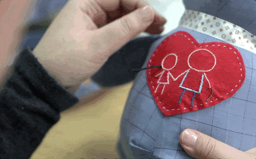 她還曾給一個「爺爺熊」在後背上綉過簡筆畫,畫上是爺爺牽着孫女,孫女頭上扎着小辮子。「家裏發生矛盾,每一次爺爺都會維護我。在外地上學,只有他問我吃得習不習慣,錢夠不夠花。我有一個永遠愛護我的爺爺。」