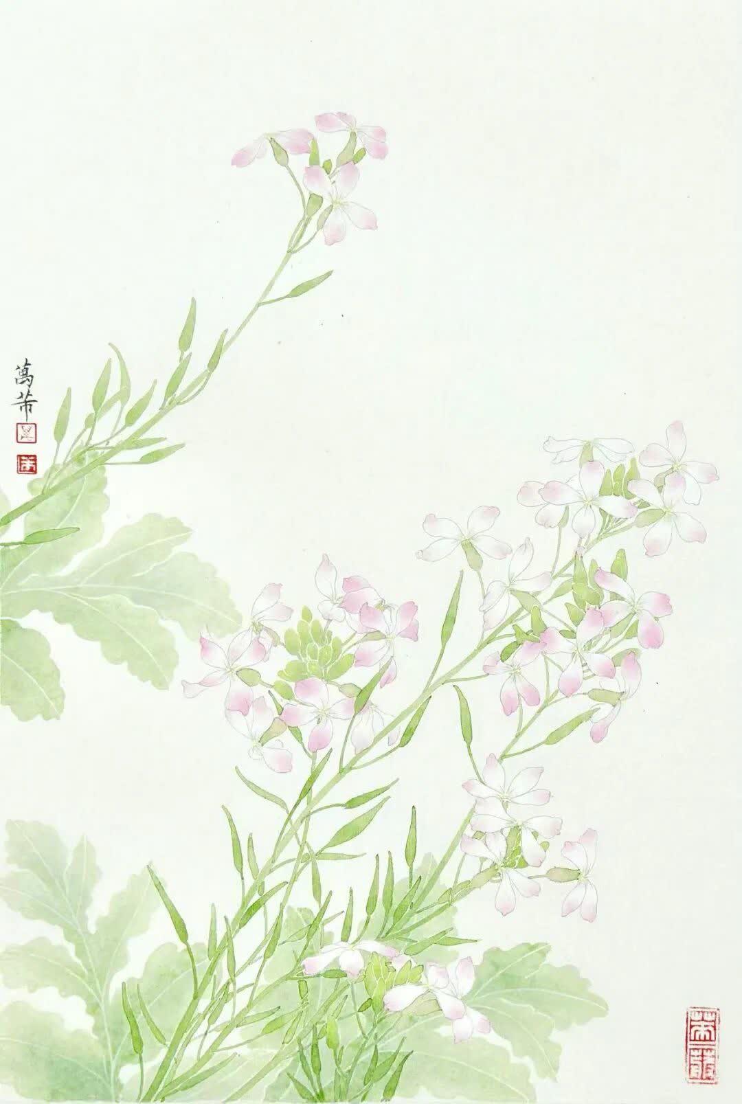 看似普通的一草一木,在萬芾的作品中清新明麗、純粹溫潤,被賦予了新的生命,別有一番情趣和韻味。