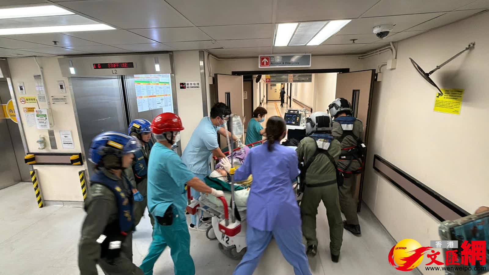 救援人員接報趕至,發現傷者頭及腳受傷,幸仍清醒,隨即由直升機把他送往東區醫院治理。