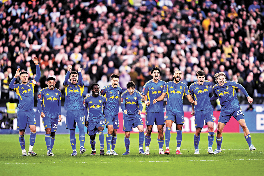 香港文匯報訊(記者 葉詩敏)香港時間昨日(6日)凌晨上演的英格蘭足總盃八強戰,韋斯咸主場迎戰列斯聯,雙方合演一場峰迴路轉的激戰。全場出現三次中柱、四次VAR介入及兩次「詐胡」,最終韋斯咸雖於補時階段連追兩球逼和2:2,但最終列斯聯在互射12碼階段以4:2勝出,相隔39年後再次殺入足總盃四強。