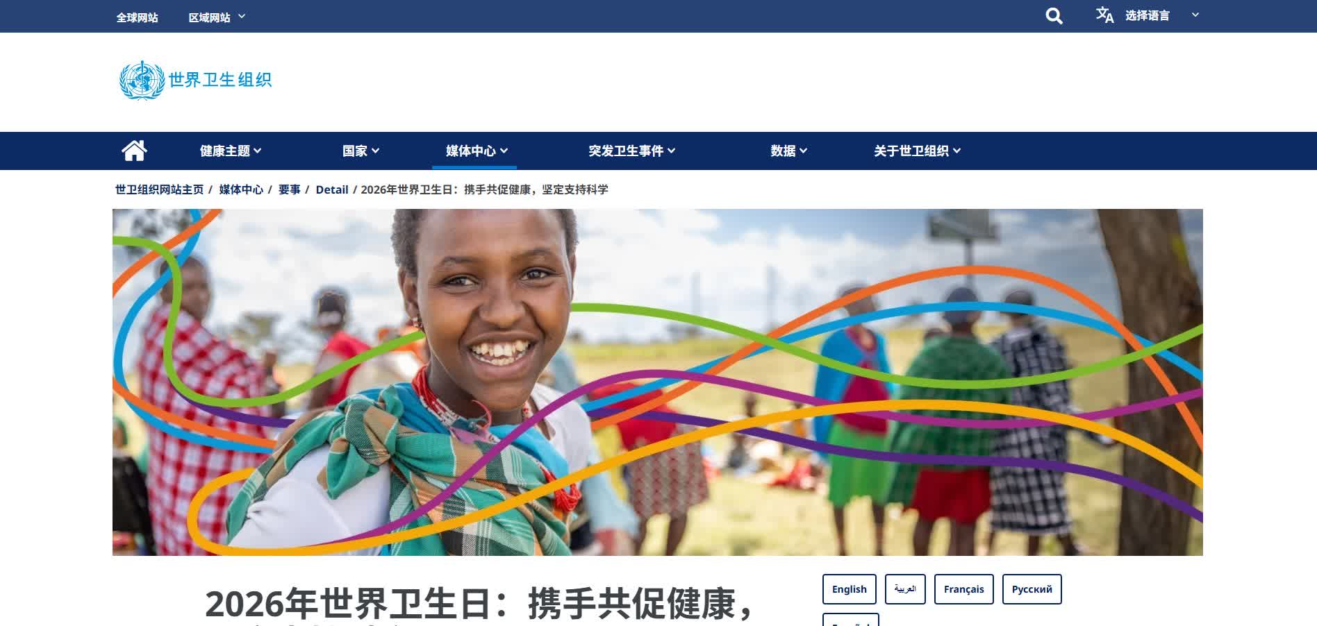 世衞將每年4月7日訂為世界衞生日,今年主題為「攜手共促健康,堅定支持科學」,讚揚科學合作在保護人類、動物、植物以及地球健康方面的力量,彰顯科學成就,並強調多邊合作的重要性。世衞與衞生署的三個合作中心職能如下: