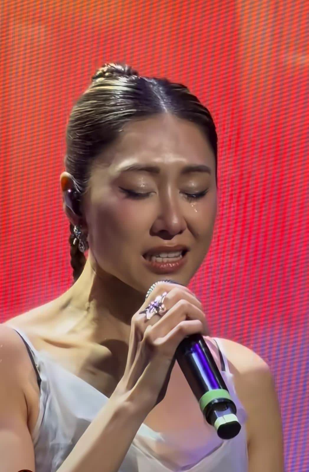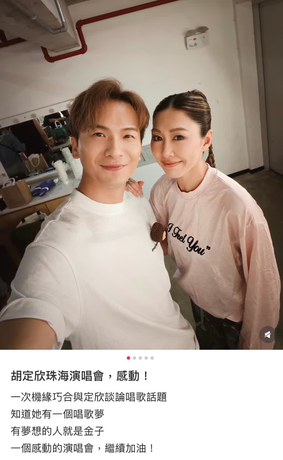 香港文匯報訊(記者 子棠)胡定欣去年10月無預警宣布與外科醫生男友陳健華(Akin)結婚後,人生進入新階段。她婚後毅然離開效力22年的TVB,將事業重心轉向音樂,近日更展開個人巡迴演唱會,獲不少樂迷支持。日前(4日),定欣在珠海站演出期間,演唱王菀之的經典作品《好時辰》時,突然情緒失控,連唱兩次都淚崩。