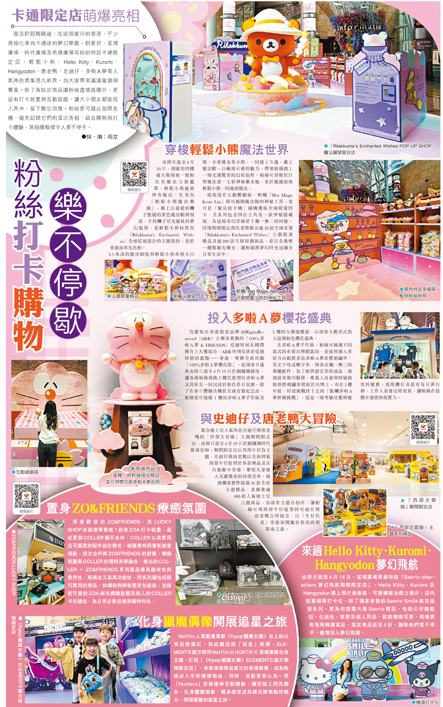復活節假期剛過,在這個春日的香港,不少商場化身為卡通迷的夢幻樂園。朗豪坊、荃灣廣場、時代廣場及希慎廣場等紛紛特設卡通限定店,輕鬆小熊、Hello Kitty、Kuromi、Hangyodon、唐老鴨、史迪仔、多啦A夢等人氣角色齊集港九新界,為大家帶來滿滿童趣與驚喜。除了有限定商品讓粉絲盡情選購外,更設有打卡裝置與互動遊戲,讓大小朋友都能投入其中,留下難忘回憶。粉絲更可藉此拍照良機,搶先記錄它們的首次亮相,結合購物與打卡體驗,其萌爆模樣令人買不停手。