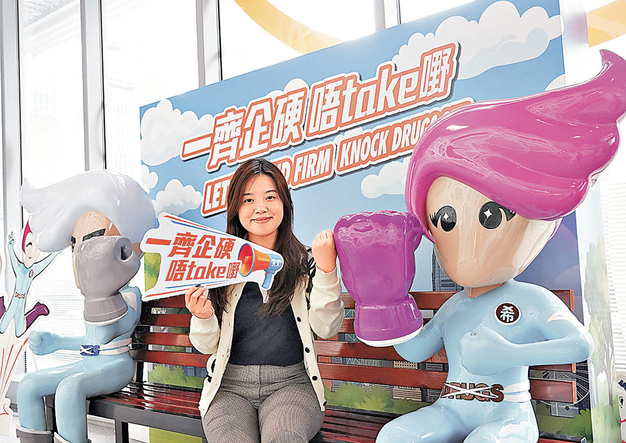 香港文匯報訊(記者 李千尋)特區政府保安局禁毒處早前推出全新禁毒宣傳計劃,包括禁毒標誌和口號「一齊企硬 唔Take嘢!」,亦以禁毒大使「冬冬」和「希希」傳遞「向毒品說不」的力量和決心。周芷葶分享指,在聯合國出席青年論壇期間,她主動向各地青年領袖送出禁毒大使周邊紀念品,還特別向他們講解了「企硬唔Take嘢」的意思,讓外地青年們通過輕鬆有趣的方式,理解香港的禁毒倡議和宣傳。