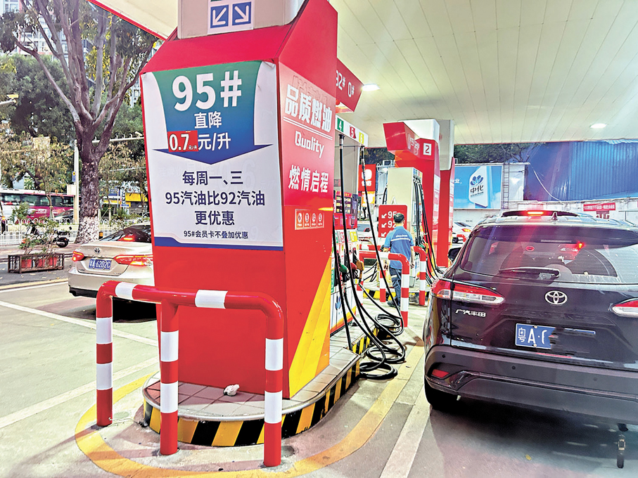 隨着用車成本顯著上升,內地車主紛紛各出招數降低用車支出。7日傍晚,香港文匯報記者在廣州荔灣區某民營加油站看到,趕在油價調整窗口前加注汽油的私家車排起了長龍,油站工作人員十分忙碌。廣州車主姚先生在上一次油價上漲周期加注95號汽油,加滿油箱多花費40多元。之後,姚先生調整策略,在本次油價上漲周期到來之前,改為前往這家民營加油站加油。該油站對於會員車主長期有優惠,95號汽油每升的價格比市面上大型油站低0.7-0.8元。7日傍晚,油價調整前夕,姚先生趕往該油站加滿油箱,綜合優惠超過30元。