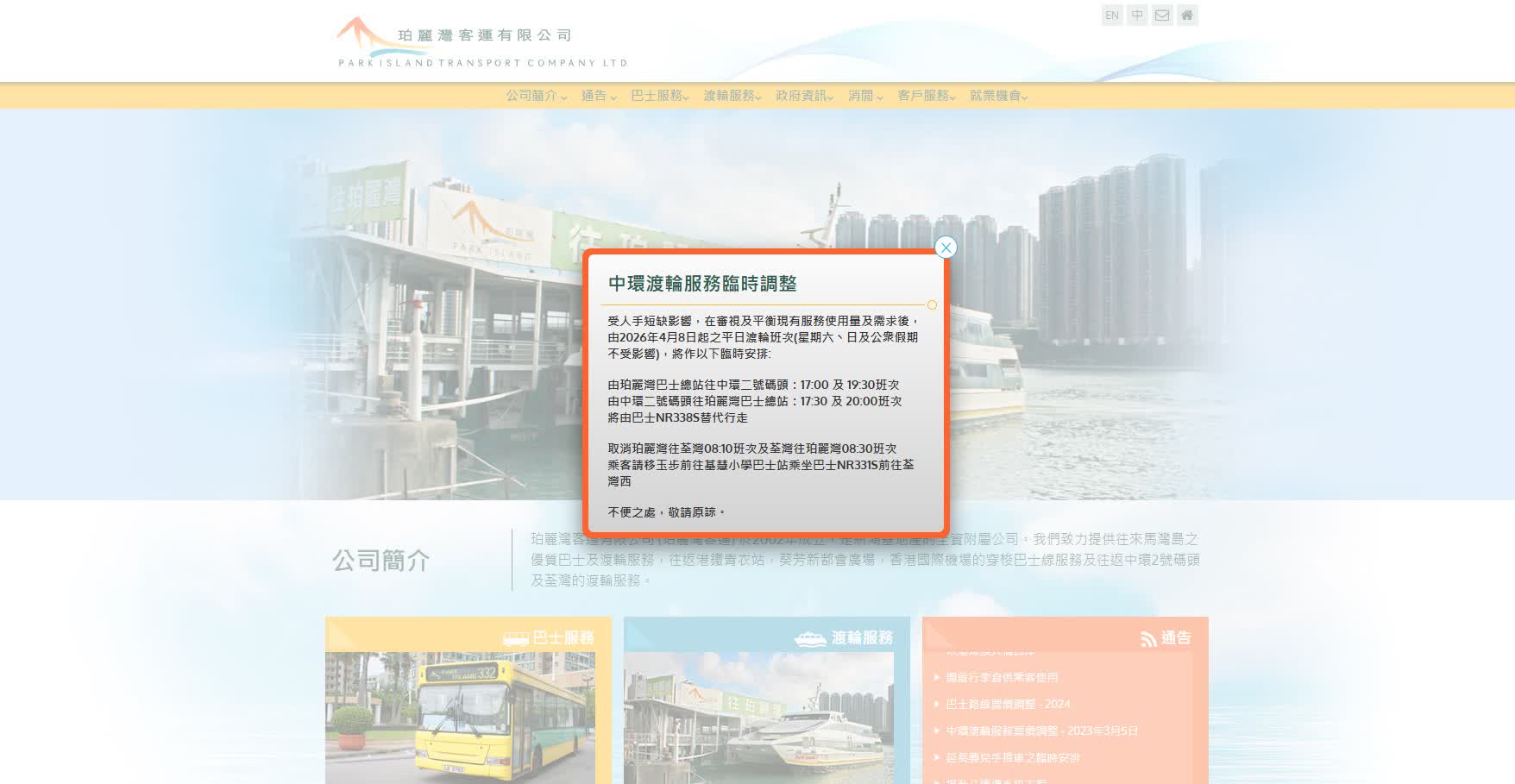 香港文匯報訊(記者 蕭景源)珀麗灣客運渡輪昨日(7日)宣布,受人手短缺影響,在審視及平衡現有服務使用量及需求後,決定今日(8日)起4班在平日傍晚來往珀麗灣及中環的渡輪,及早上2班來往珀麗灣及荃灣的渡輪服務將會取消,由巴士代替路線。今日所見,珀麗灣客運在碼頭貼出即日起取消6班平日渡輪服務通告,但不少市民或旅客到達碼頭始知有渡輪班次取消。