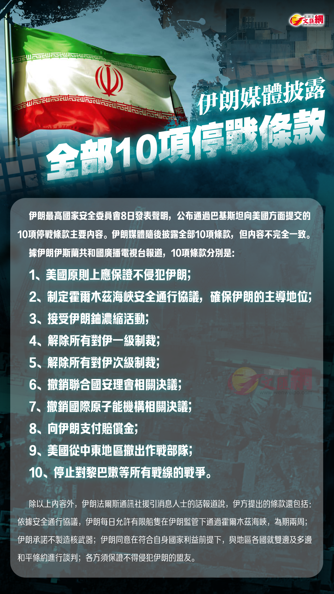 伊朗媒體披露伊朗提出的10項停戰條款,但內容不完全一致。