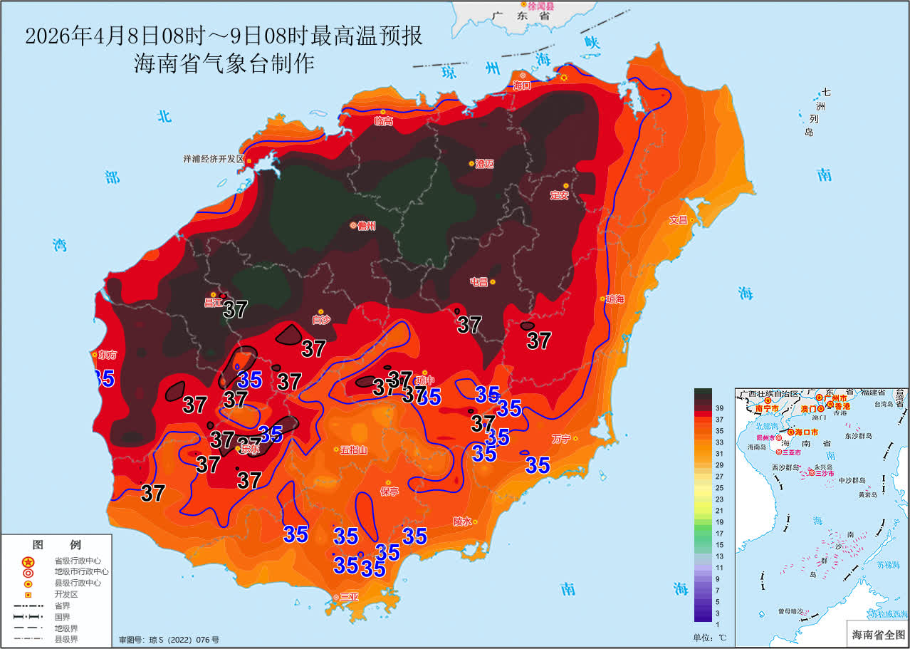 據央視新聞報道,從4月4日開始,海南省氣象部門連續發布高溫四級預警,8日繼續發布該預警。近期海南降水稀少,地表升溫極快,導致多地最高氣溫升至37℃~39℃,局部地區甚至觸及40℃。氣象部門預計,未來幾天,高溫天氣還將持續。