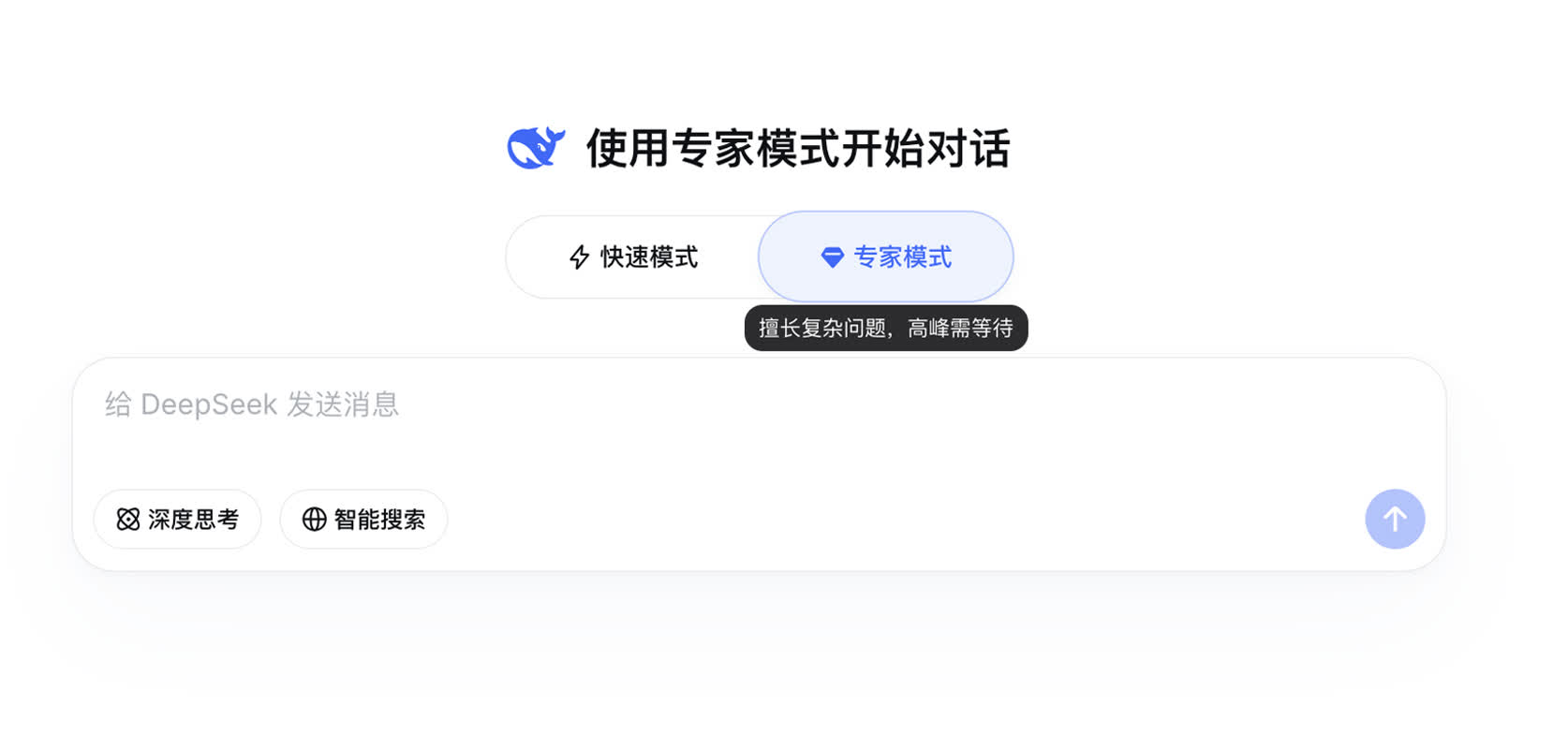 4月8日上午,記者發現,DeepSeek網頁端和iOS端頁面均發生變化,對話頁面出現「快速模式」和「專家模式」兩種模式,快速模式標註「適合日常對話,即時響應」,專家模式則標註「擅長複雜問題,高峰需等待」。兩種模式下均可選擇是否開啟深度思考和智能搜索。