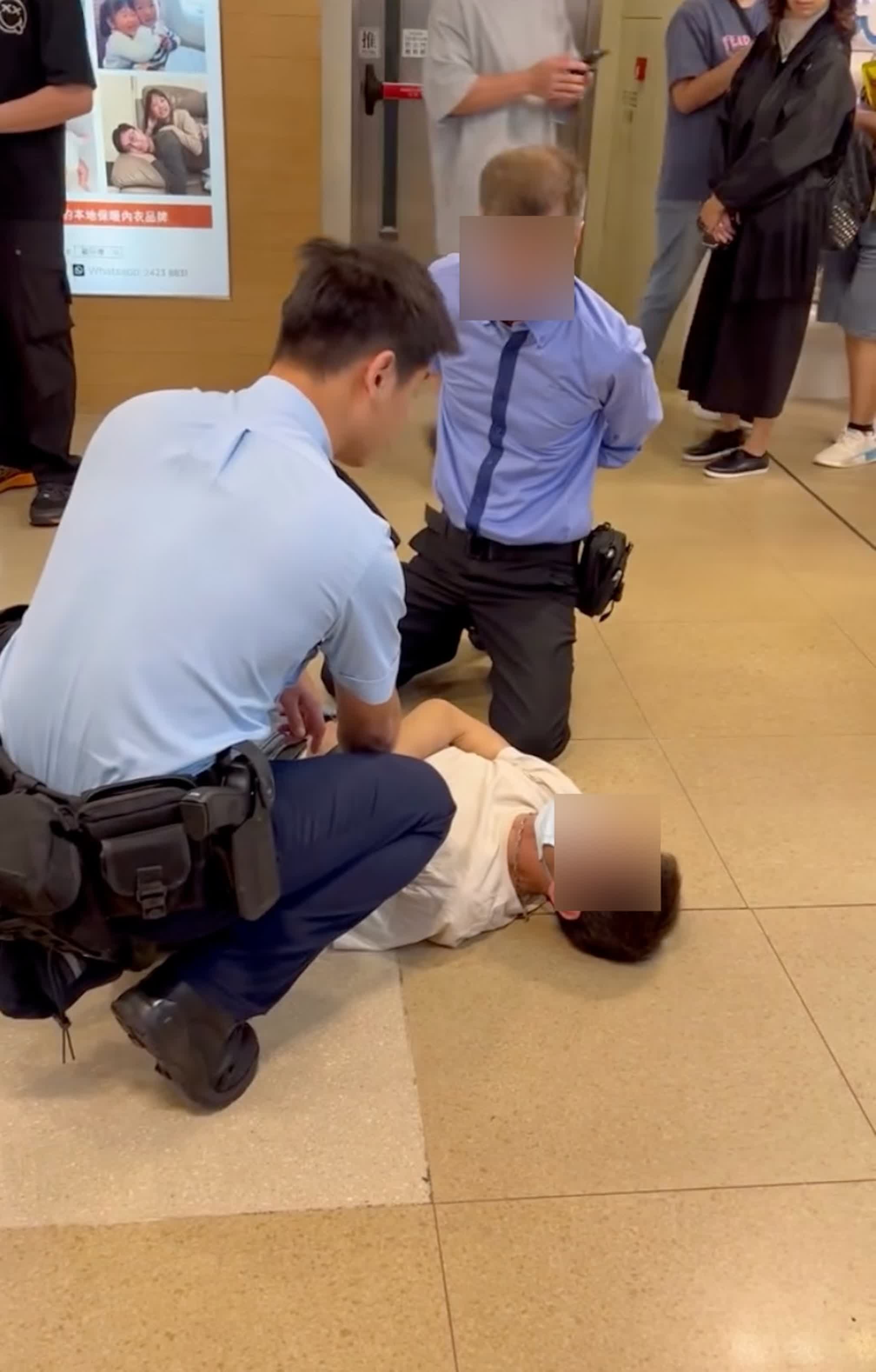 由事後網上流傳的照片可見,一名穿白色短袖衫及戴口罩的男子躺在地上,身旁有一名軍裝警員及一名疑是商場的男保安員。案件現由黃大仙警區刑事調查隊第六隊跟進。