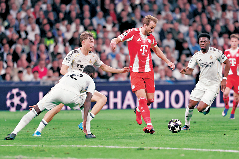 在英格蘭早前兩場友賽及上場德甲對弗賴堡,均因足踝受傷無緣披甲的哈利卡尼,今仗終於復出並替拜仁正選上陣。拜仁今仗有不少具威脅攻勢,戰至41分鐘,皇馬「送禮」,雲尼斯奧斯祖利亞傳波失誤,拜仁馬上打反擊,由路易斯迪亞斯射入先開紀錄。