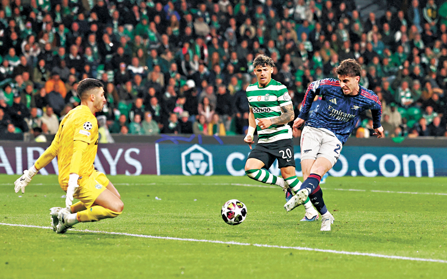 同時間士砵亭主場對阿仙奴,「兵工廠」踢法較謹慎、全場只有七次射門,士砵亭有11次射門,最終阿仙奴在補時一分鐘憑加比爾馬天尼利送出妙傳,夏維斯控定後冷靜射入,以1:0取勝,並打破士砵亭今屆歐聯主場不敗之身。