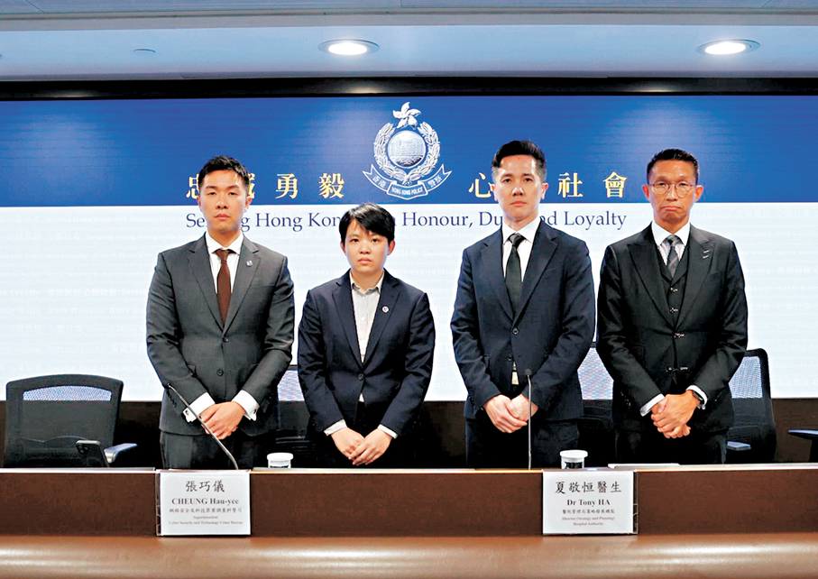 警方昨日公布案情指出,網絡安全及科技罪案調查科接報後,即時聯同數碼法理鑑證及事故應變隊人員,全面檢視醫管局內部多個資訊系統,仔細分析涉案系統的日誌紀錄及存取紀錄,終追溯到資料外洩源頭,隨即到該間外判系統維護承辦商的兩處辦公室,檢取超過60部數碼裝置,包括伺服器、電腦、手機及存儲設備,並即時進行深入的數碼鑑證工作。