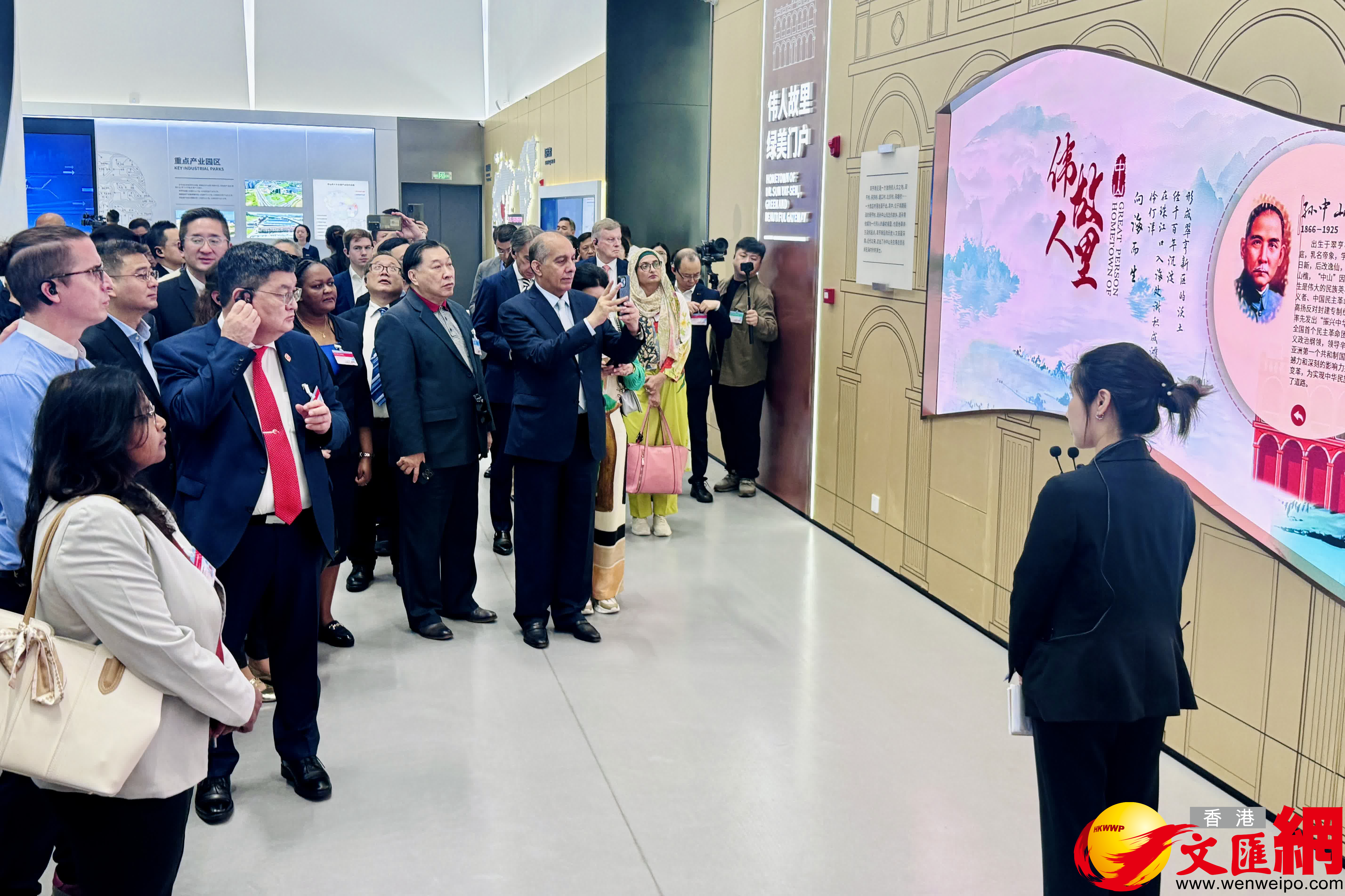 「以前我也參加過幾個這樣的參訪團,但這是我第一次來到中山,它的規模和地區特色都讓我印象深刻,通過翠亨新區規劃館的3D飛行視頻,我了解到這座城市的規模。」蕭子銘表示,這次行程結束後,自己會向香港英國商會的成員介紹在中山了解到的情況,希望能夠促進雙方合作。