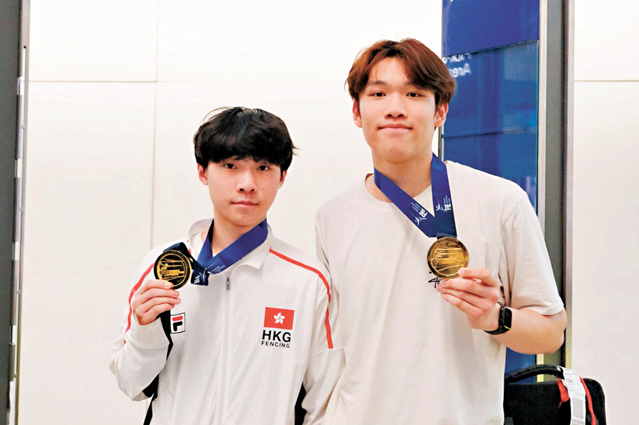 港隊花劍19歲小將林浩朗先稱霸青年組男子花劍,17歲的何承謙緊接在少年組奪冠,港隊一口氣連贏兩面世青賽金牌,是首次同年誕生兩名世界冠軍。連同師兄蔡俊彥同時囊括三個組別的世界冠軍,足證香港男子花劍在世界舞台的實力。花劍小將們昨經歷約40小時長途機凱旋,掛上金牌的林浩朗坦言:「很鼓舞,香港劍手能打出名堂,也鼓勵更多人朝目標進發,更多小朋友接觸劍擊。」