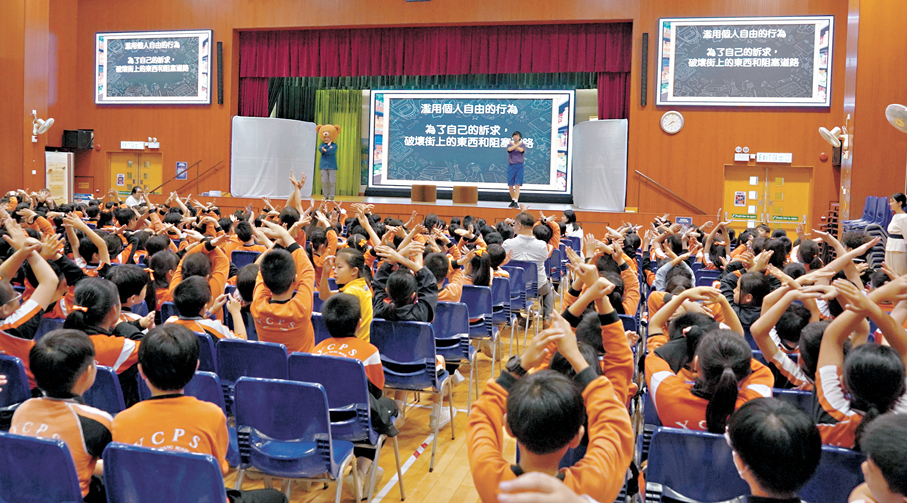 香港文匯報訊(記者 李芷珊)為加強在校推廣國家安全意識,保安局積極在幼稚園舉辦《安熊童樂會》校園巡禮工作坊,及在小學舉行國家安全校園互動劇場《校園食神大賽》,以配合不同年齡學童所需。其中《校園食神大賽》劇場是源於動漫系列《安仔與熊仔》活潑生動的故事和互動形式,向小學生進行國家安全教育,同時將小學生日常生活可能遇到的情境融入劇情,提升學生主動自覺維護國家安全的意識,包括認識何謂散播假訊息、煽動仇恨、濫用自由等。自去年11月推出後,已與近3,000名小學生互動並傳揚國家安全和守法相關的重要概念。