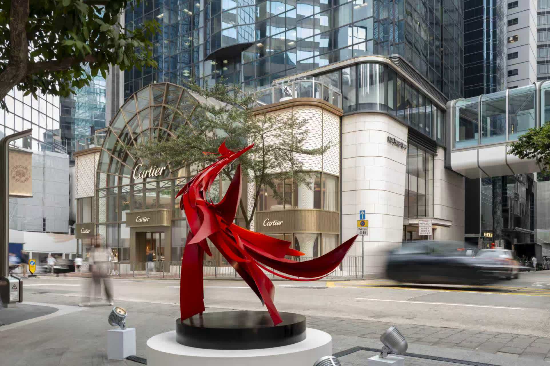 據悉,四件雕塑作品分布於利園區不同公共空間,在⾼樓與⼈潮之間悄然綻放,體現利園的藝術品味與⽂化視野,營造糅合活美學與⼈⽂氣息的城市體驗,讓訪客在⽇常步履之間,與東⽅⽂化與現代雕塑不期⽽遇。