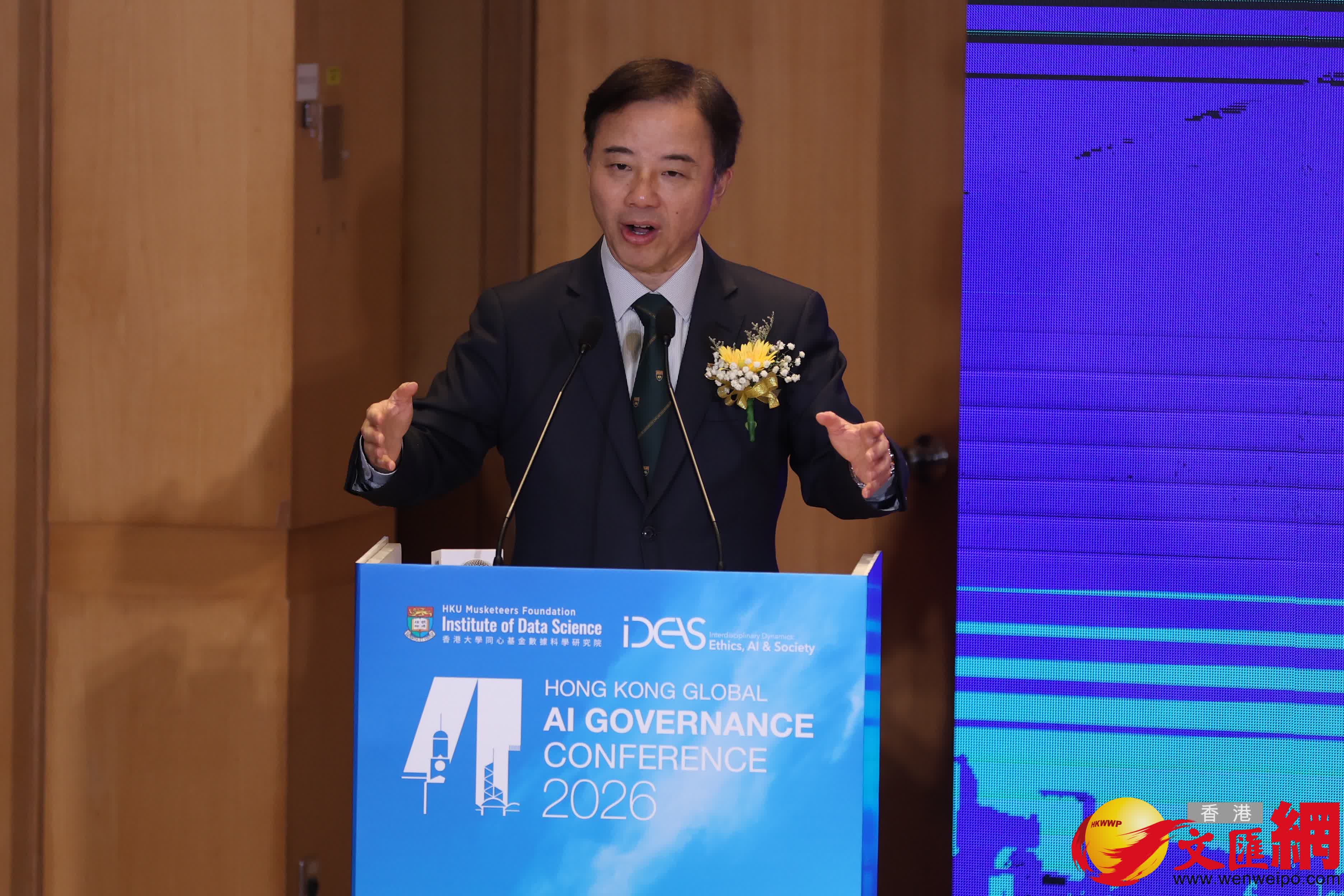 他指出:「AI發展呈指數級增長,我們需未雨綢繆,應對其潛在的社會、法律、政治與哲學問題。」他期望全球學者共同探討AI治理,促進科技與人文深度融合,確保AI安全、可控且向善發展。